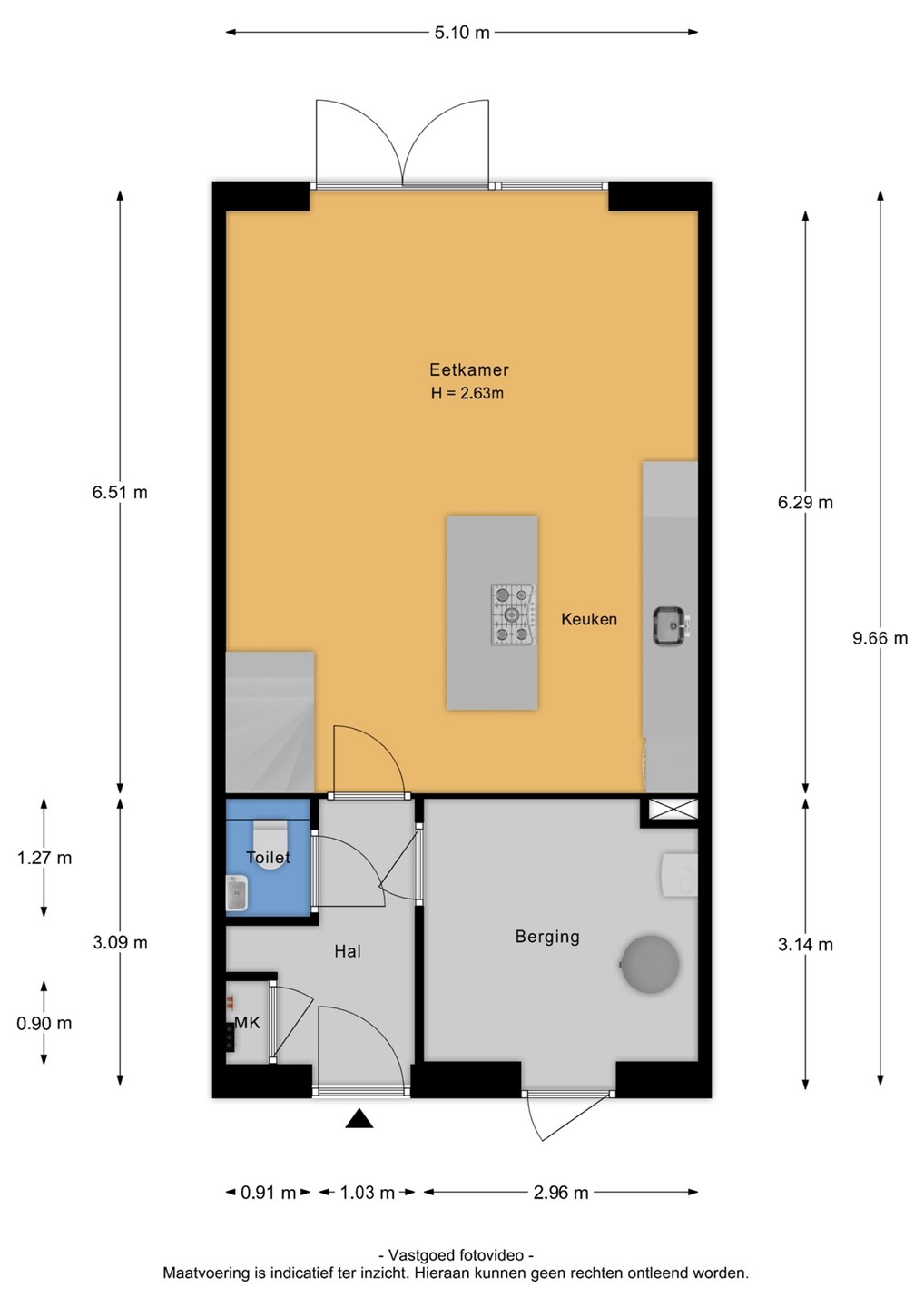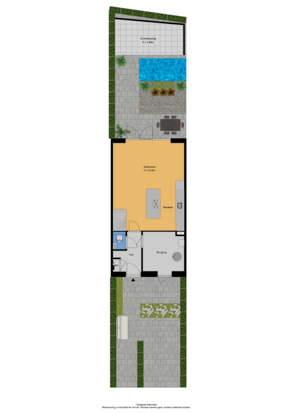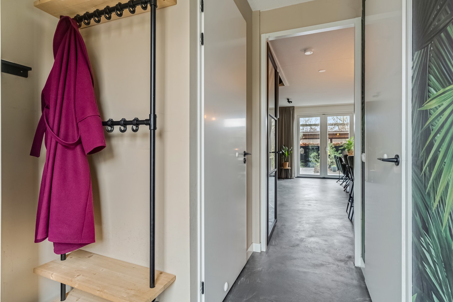 Via de entree kom je in de hal, die toegang biedt tot de inpandige berging. Deze berging beschikt tevens over een extra toegangsdeur aan de voorzijde en huisvest naast praktische bergruimte de warmtepompinstallatie met een 300 liter boiler.