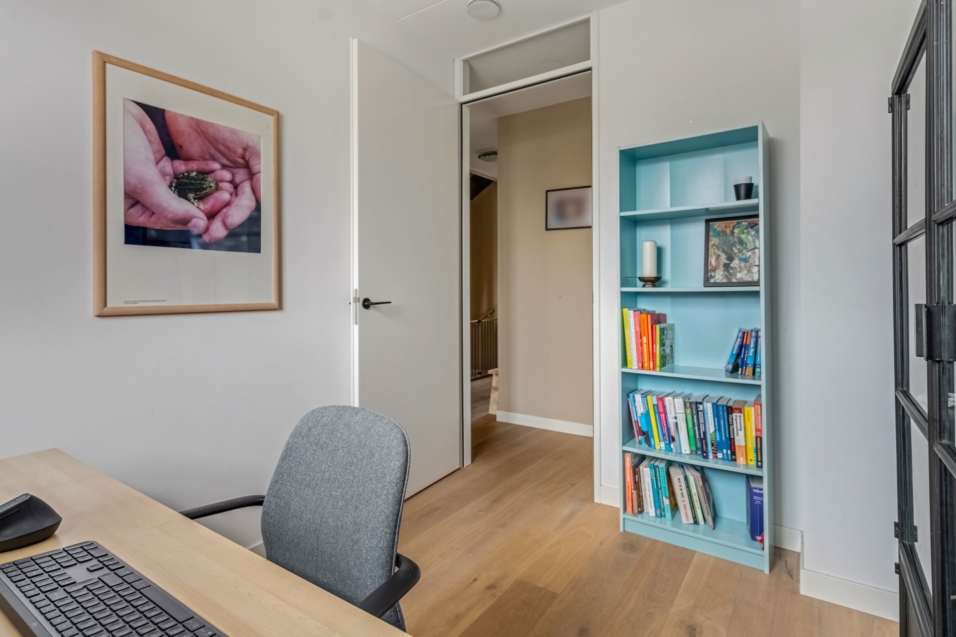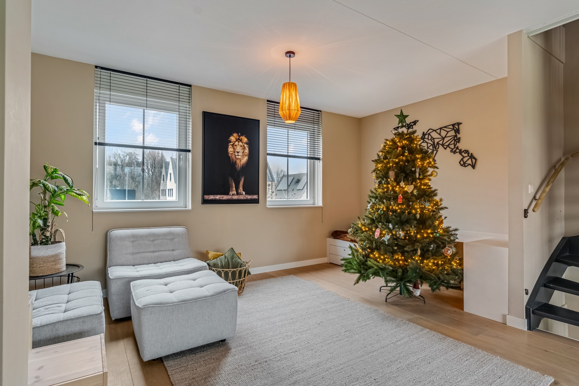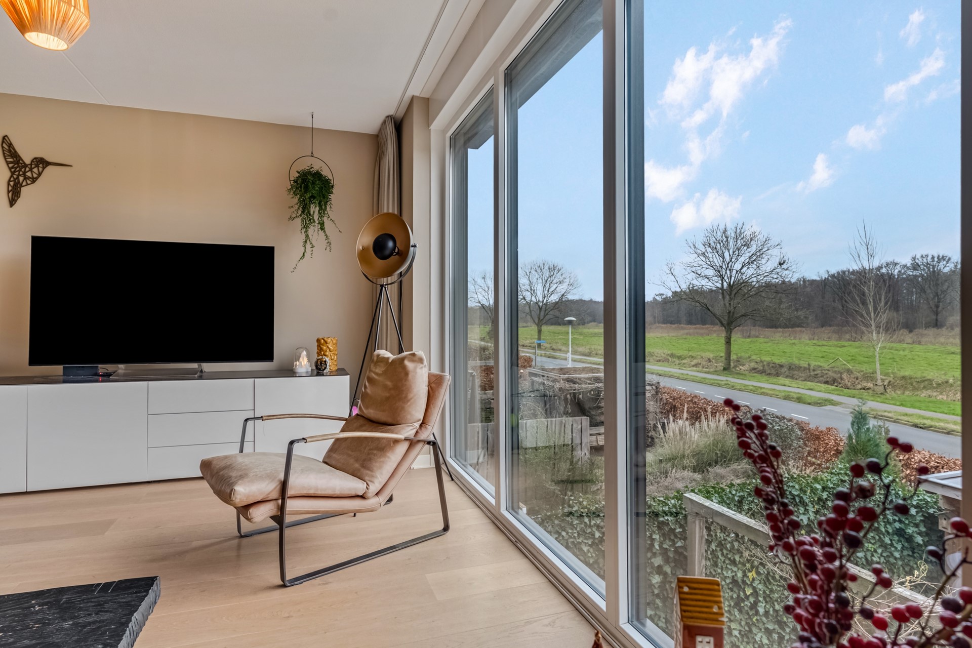 De eerste verdieping is volledig ingericht als woonverdieping. De ruime woonkamer is praktisch en speels ingedeeld met meerdere zitgedeeltes. Aan de voorzijde van de woning bevindt zich een fijne zithoek, terwijl aan de achterzijde een tweede zithoek is gecreëerd met een prachtig vrij uitzicht over het aangrenzende natuurgebied.