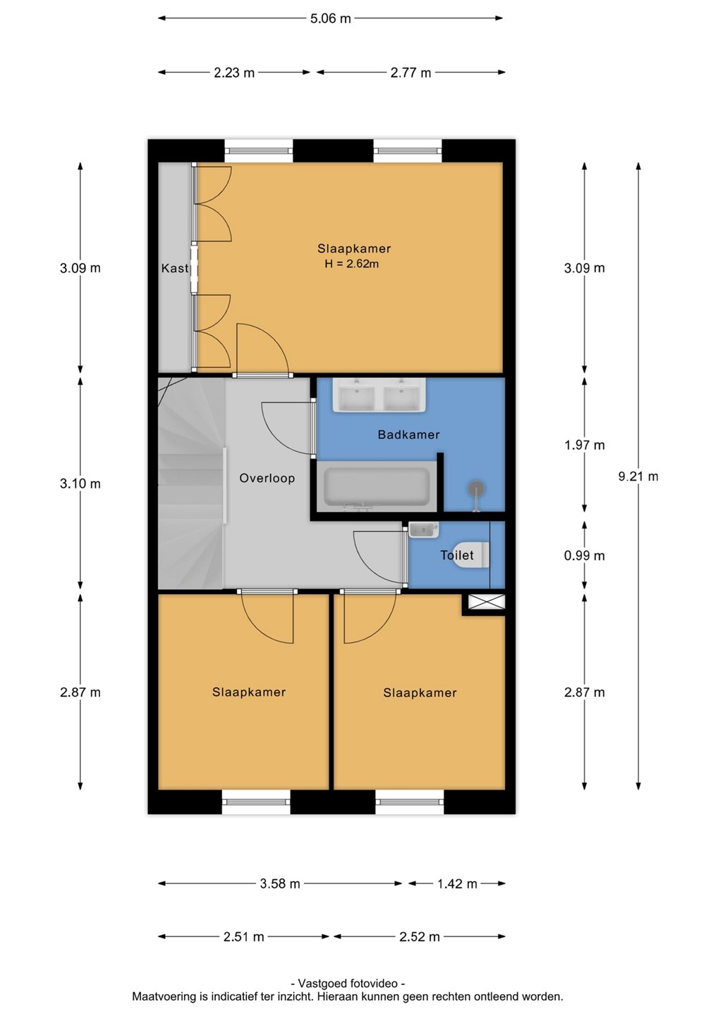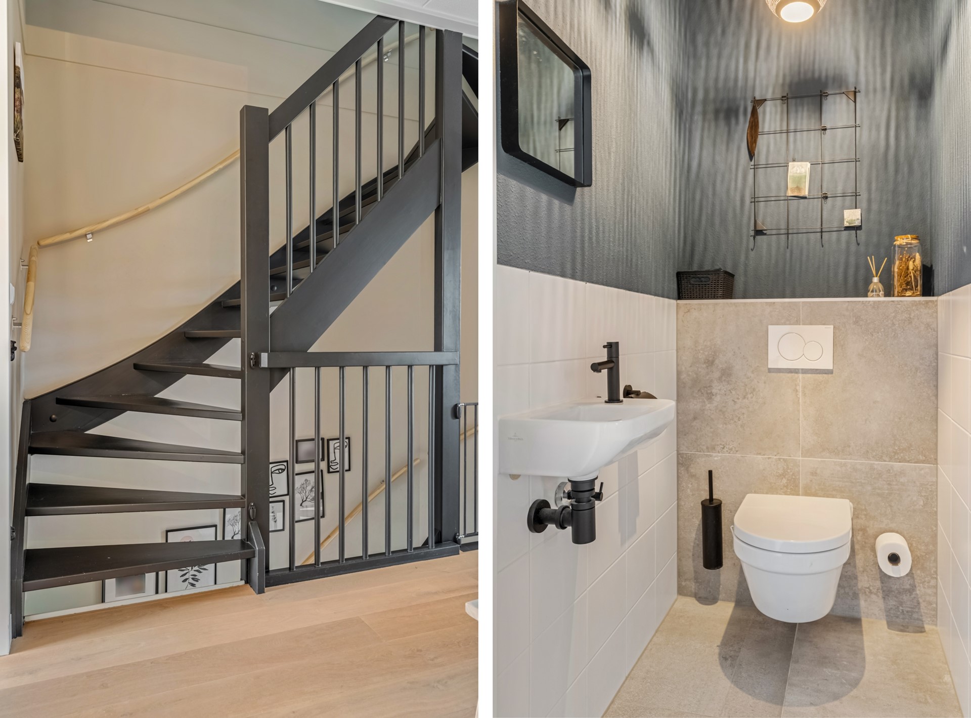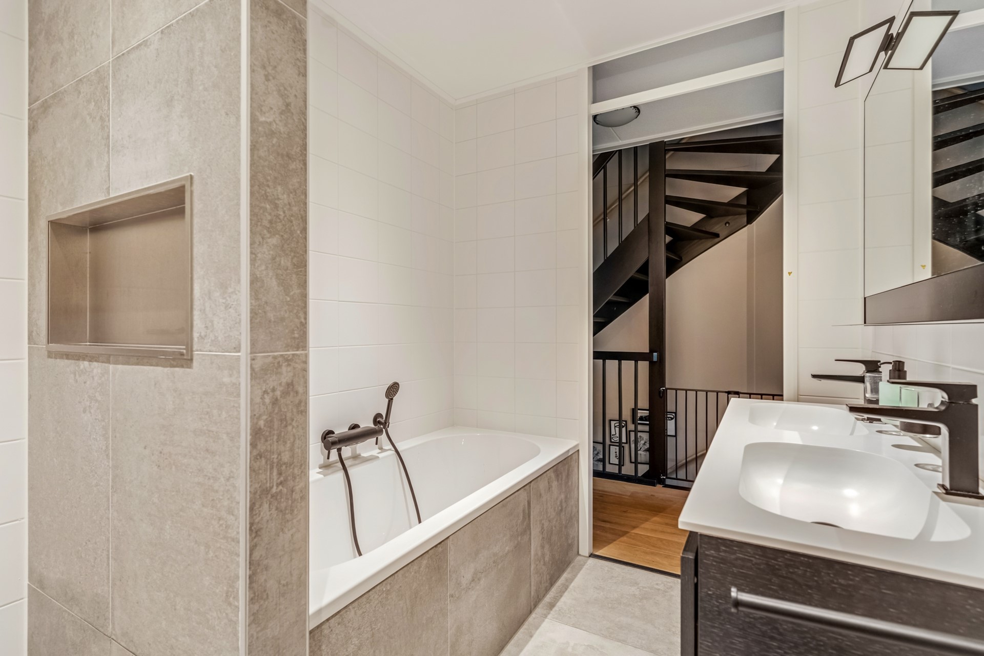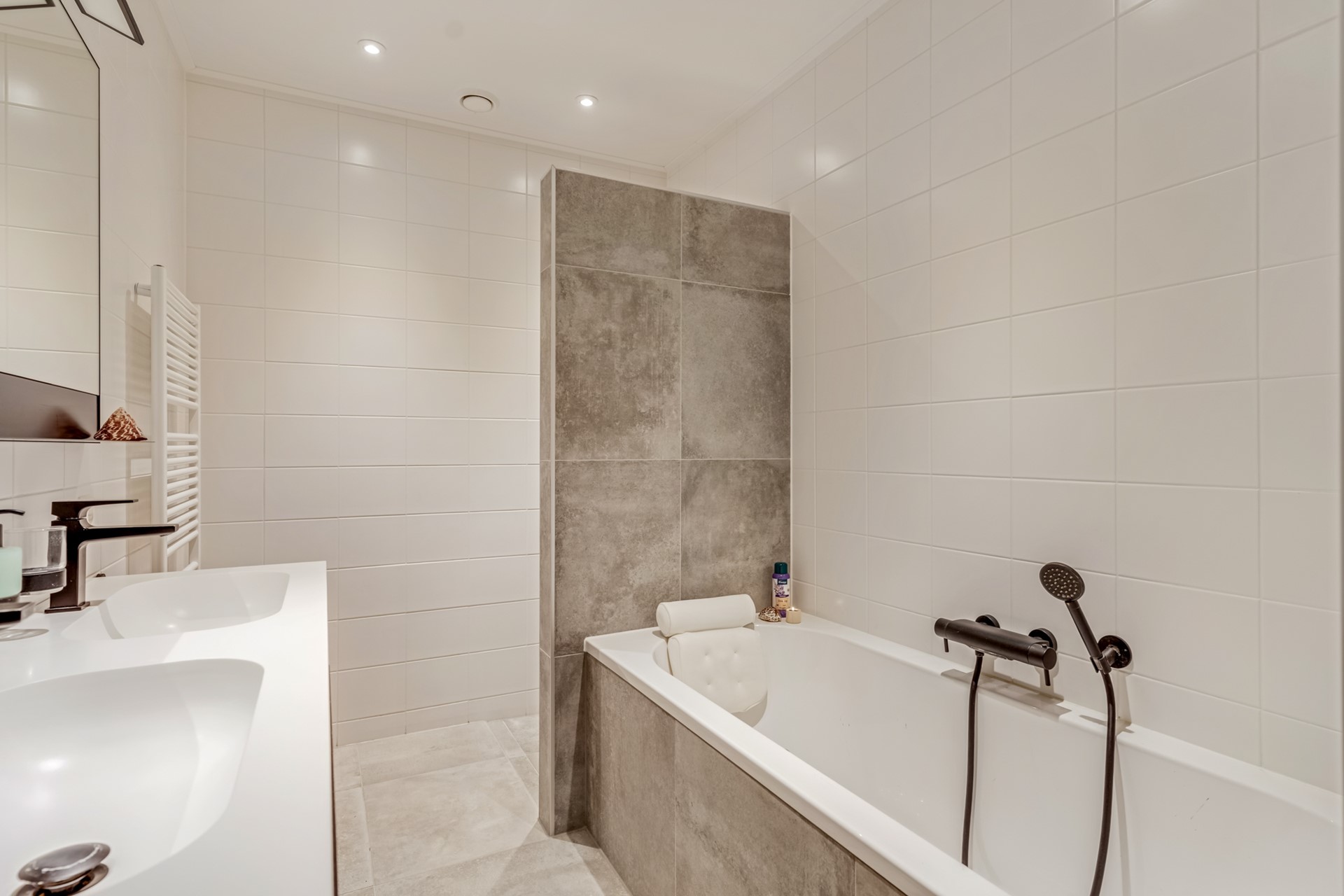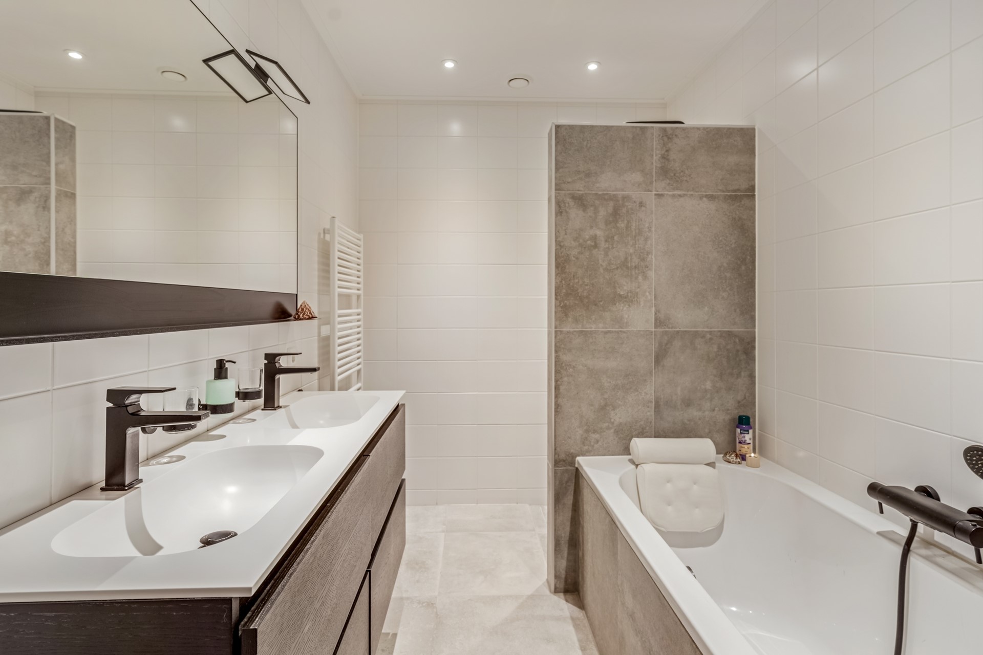 Daarnaast beschikt deze verdieping over een aparte toiletruimte en een ruime, luxe badkamer. De badkamer is compleet uitgevoerd met een dubbele wastafel, een inloopdouche met regendouche en een ligbad, waar je heerlijk tot rust kunt komen.