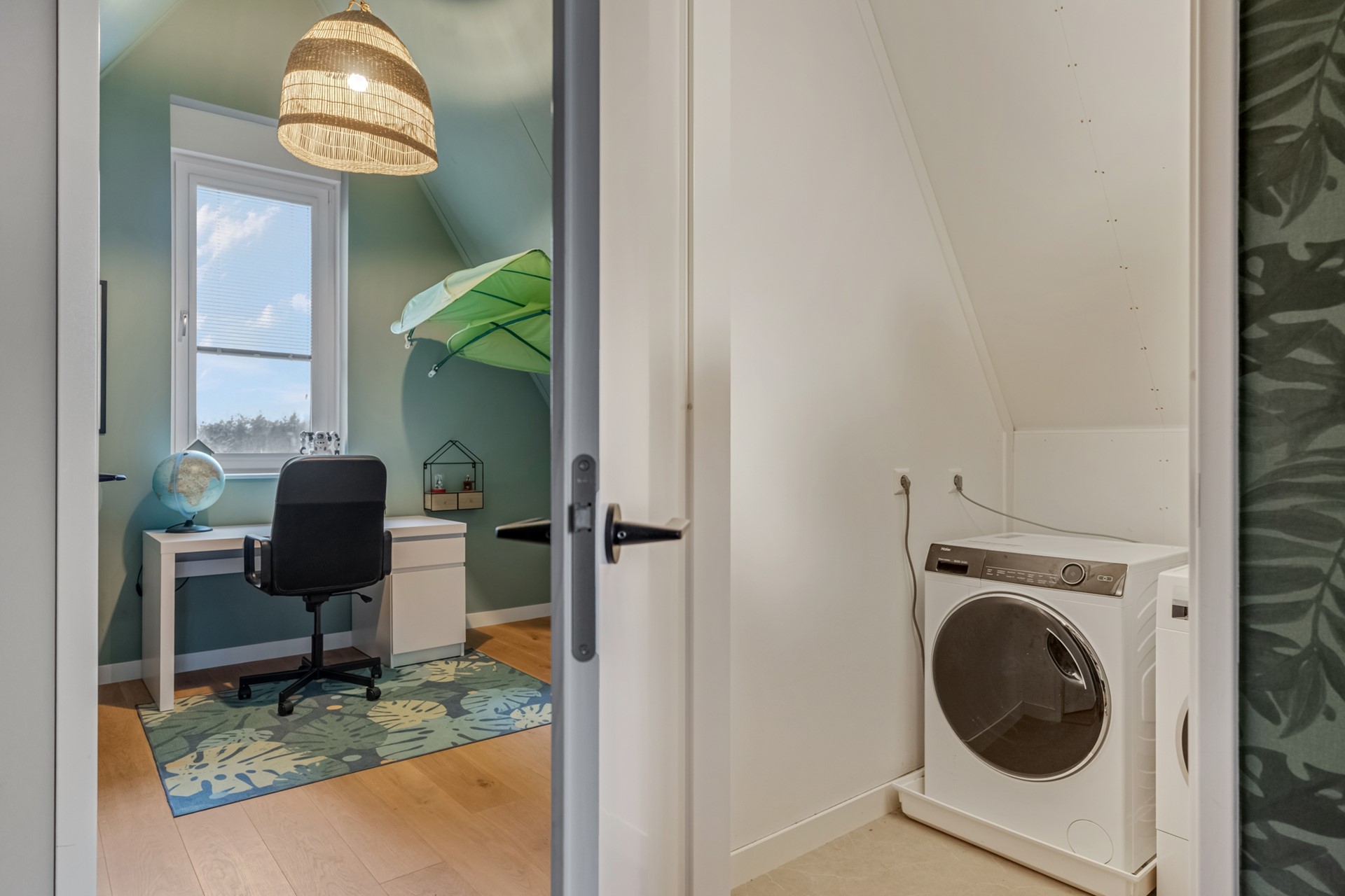 Daarnaast is er een inpandige berging aanwezig met de was- en droogopstelling en de WTW-installatie. Extra praktisch is de aanwezige opbergruimte achter de knieschotten aan de zijkanten van de slaapkamers, waardoor deze verdieping optimaal wordt benut.