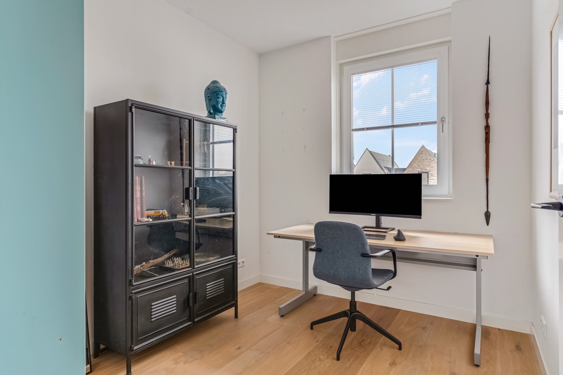 Op de tweede verdieping bevindt zich een ruime hoofdslaapkamer, gesitueerd over de volledige breedte van de woning. Aan de andere zijde van deze verdieping zijn twee comfortabele slaapkamers gerealiseerd.