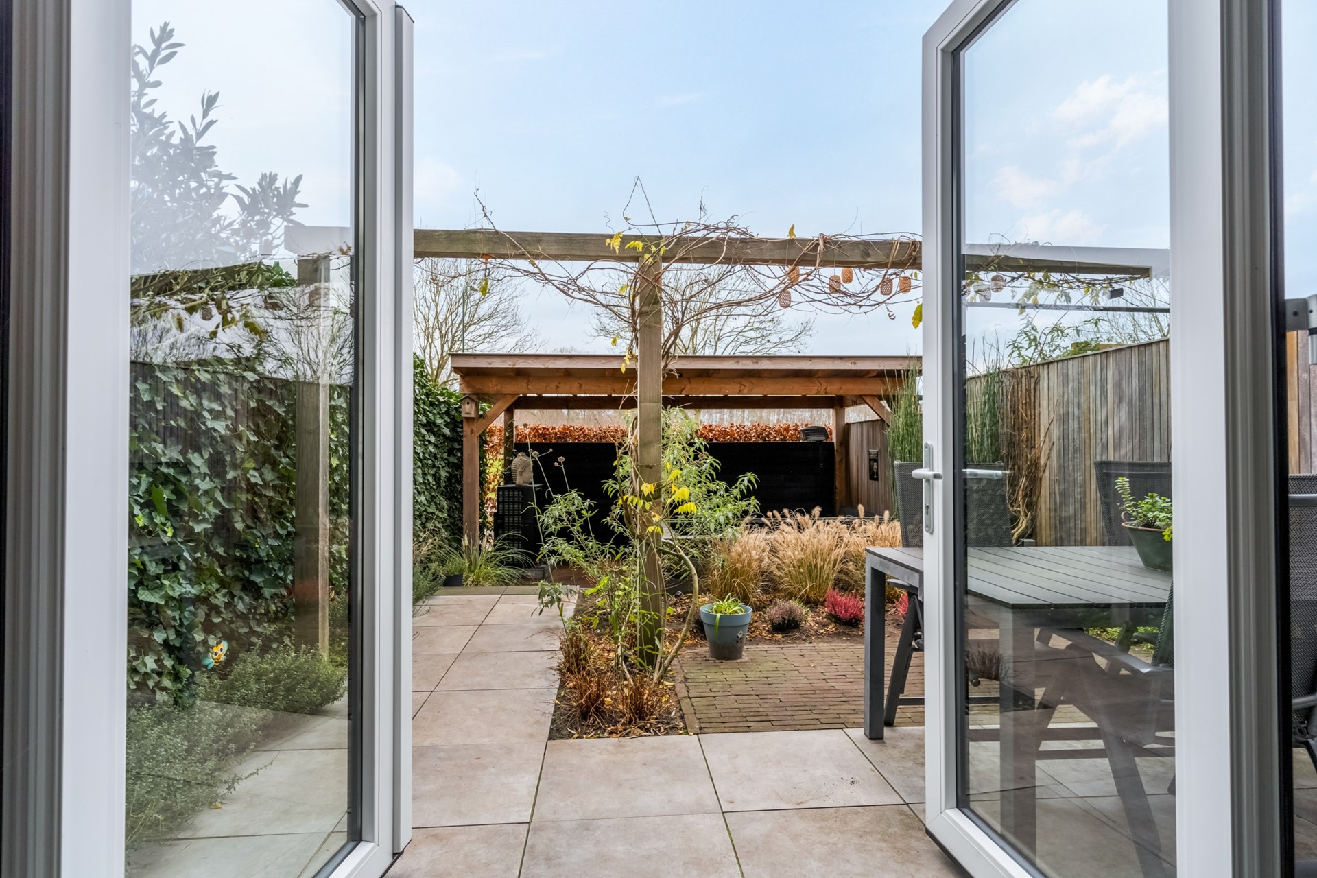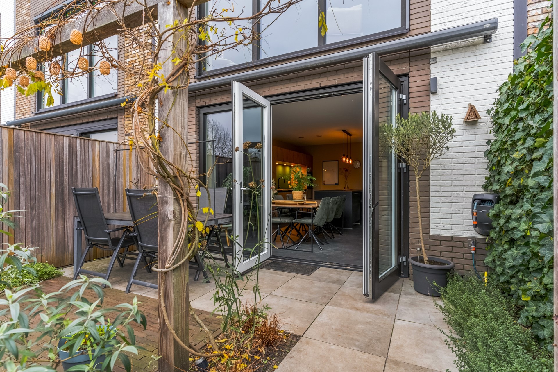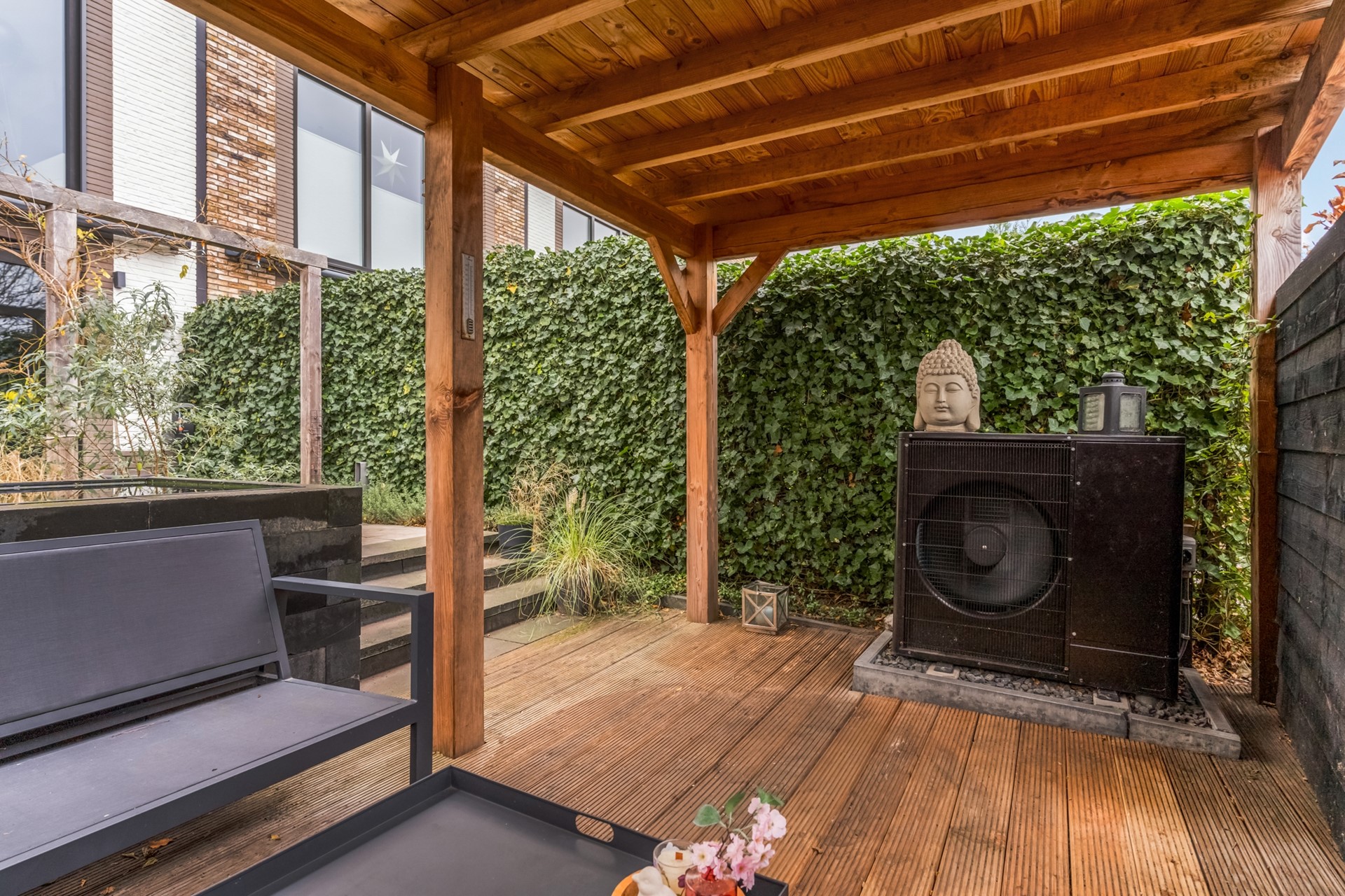 De woning beschikt over een heerlijk zonnige, op het zuiden gelegen tuin, voorzien van een uitvalscherm en solar-aangedreven zonwering bij alle ramen. Dit zorgt niet alleen voor extra comfort tijdens warme dagen, maar draagt ook bij aan energiezuinig wonen.