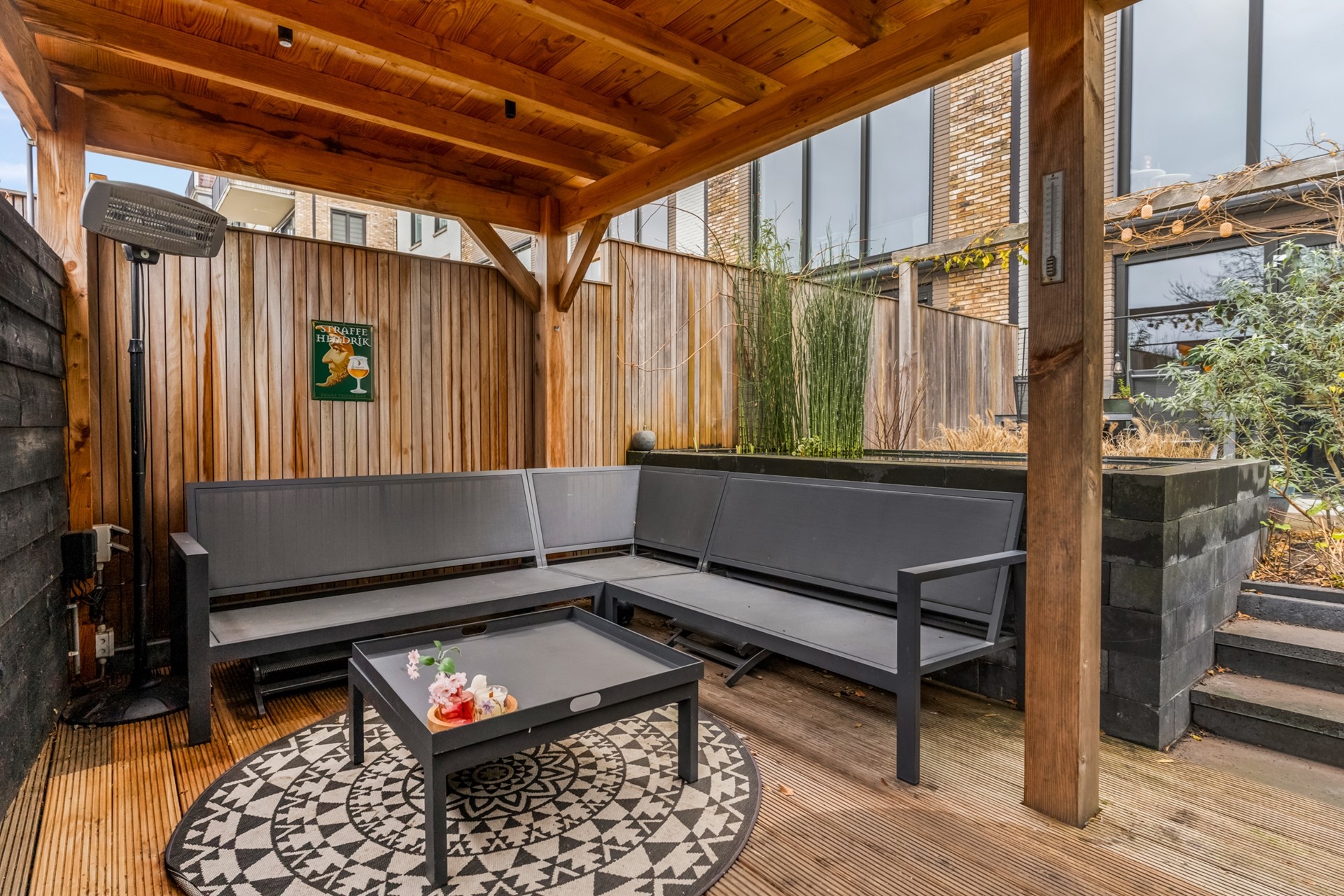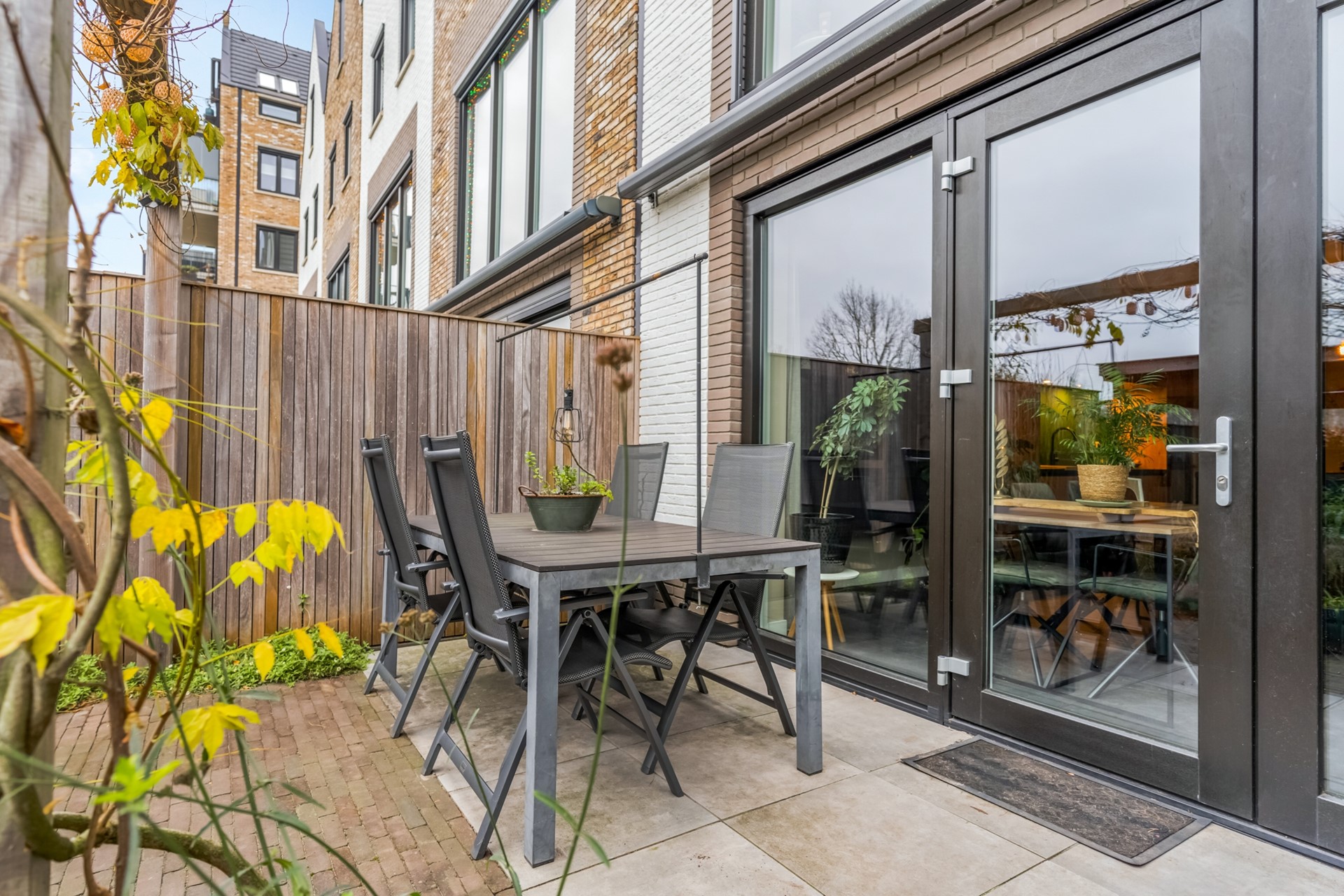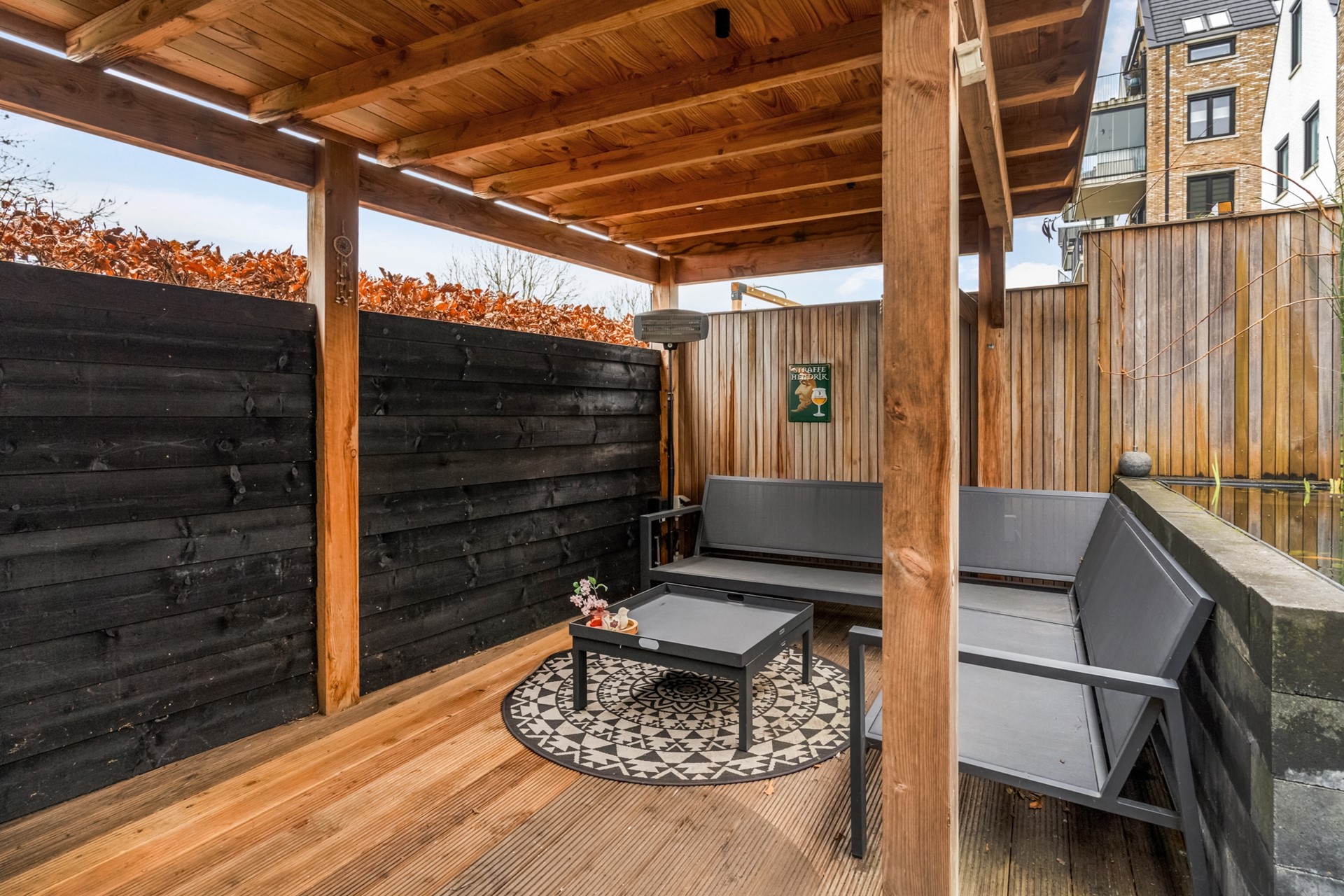 De woning beschikt over een heerlijk zonnige, op het zuiden gelegen tuin, voorzien van een uitvalscherm en solar-aangedreven zonwering bij alle ramen. Dit zorgt niet alleen voor extra comfort tijdens warme dagen, maar draagt ook bij aan energiezuinig wonen.