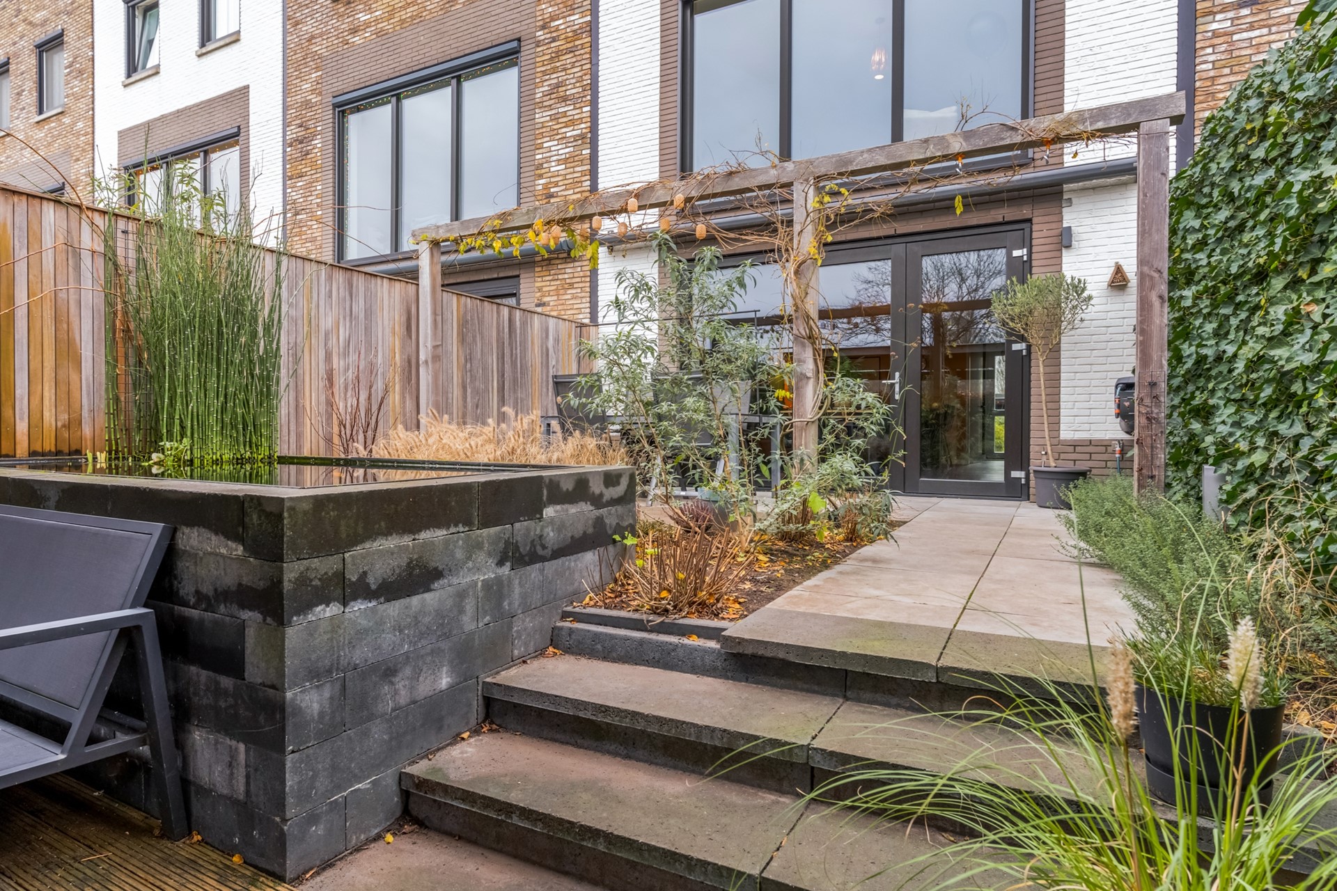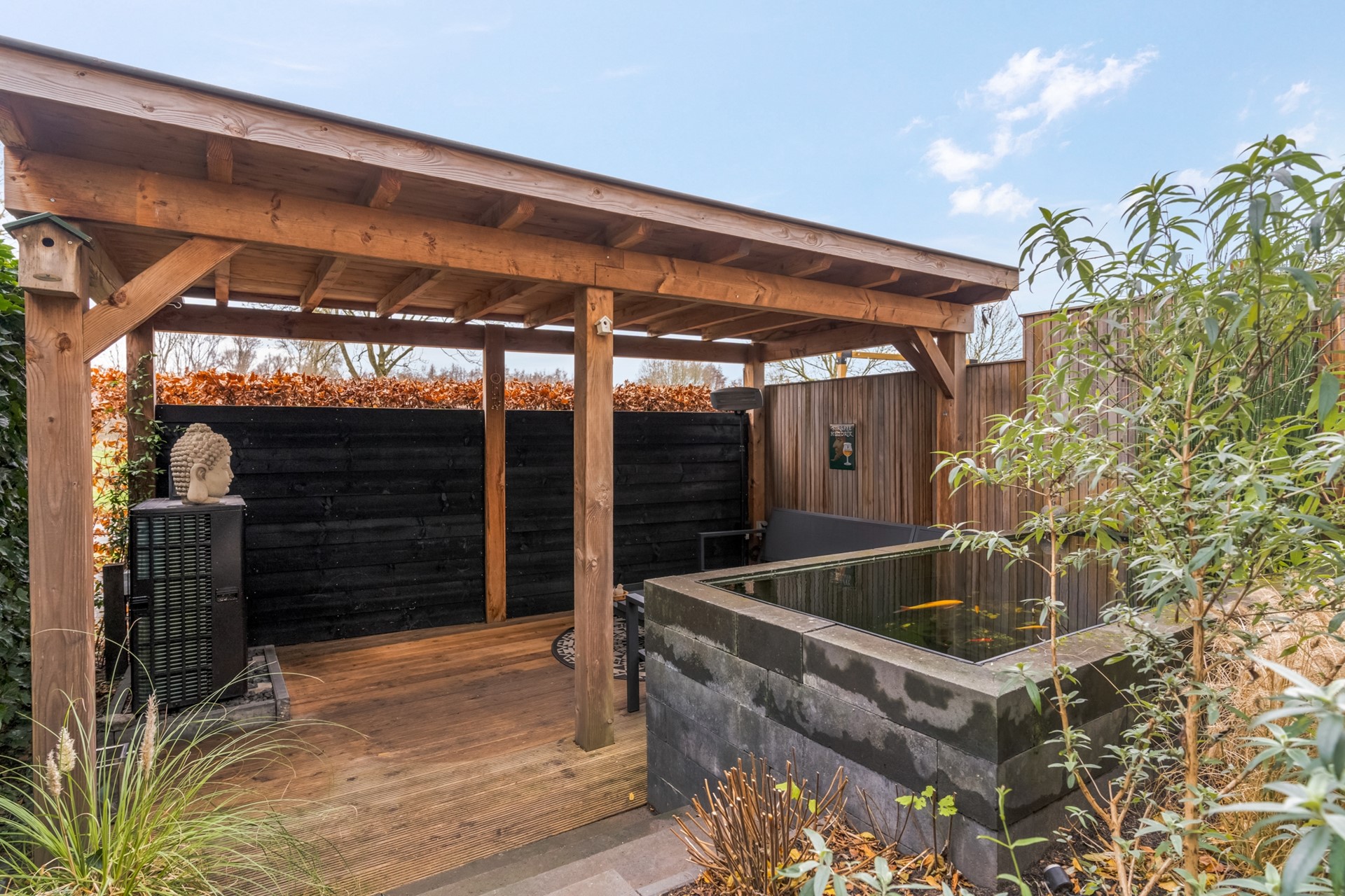 De tuin is onder architectuur aangelegd door een hovenier en straalt rust en kwaliteit uit. Er is gebruikgemaakt van keramische tegels, er is een sfeervolle vijver gerealiseerd en een fijne zitplek met overkapping, waardoor je hier van het vroege voorjaar tot in het najaar optimaal van het buitenleven kunt genieten. Dankzij de doordachte indeling is de tuin zowel geschikt voor ontspanning als voor gezellige momenten met familie en vrienden.