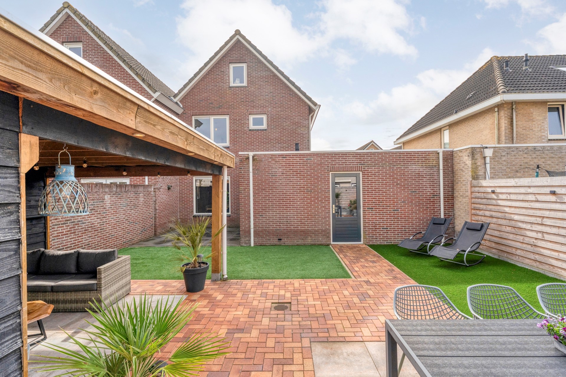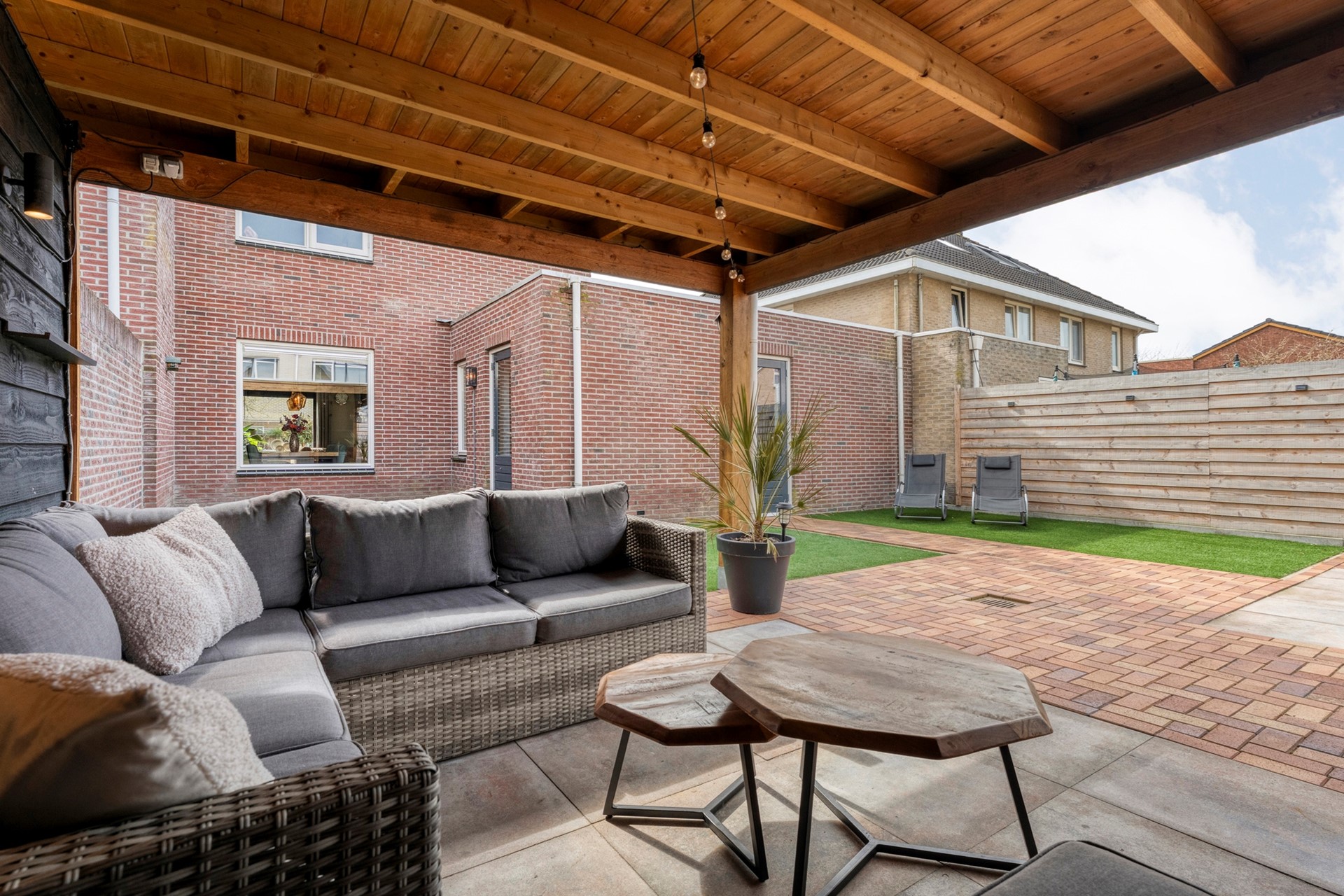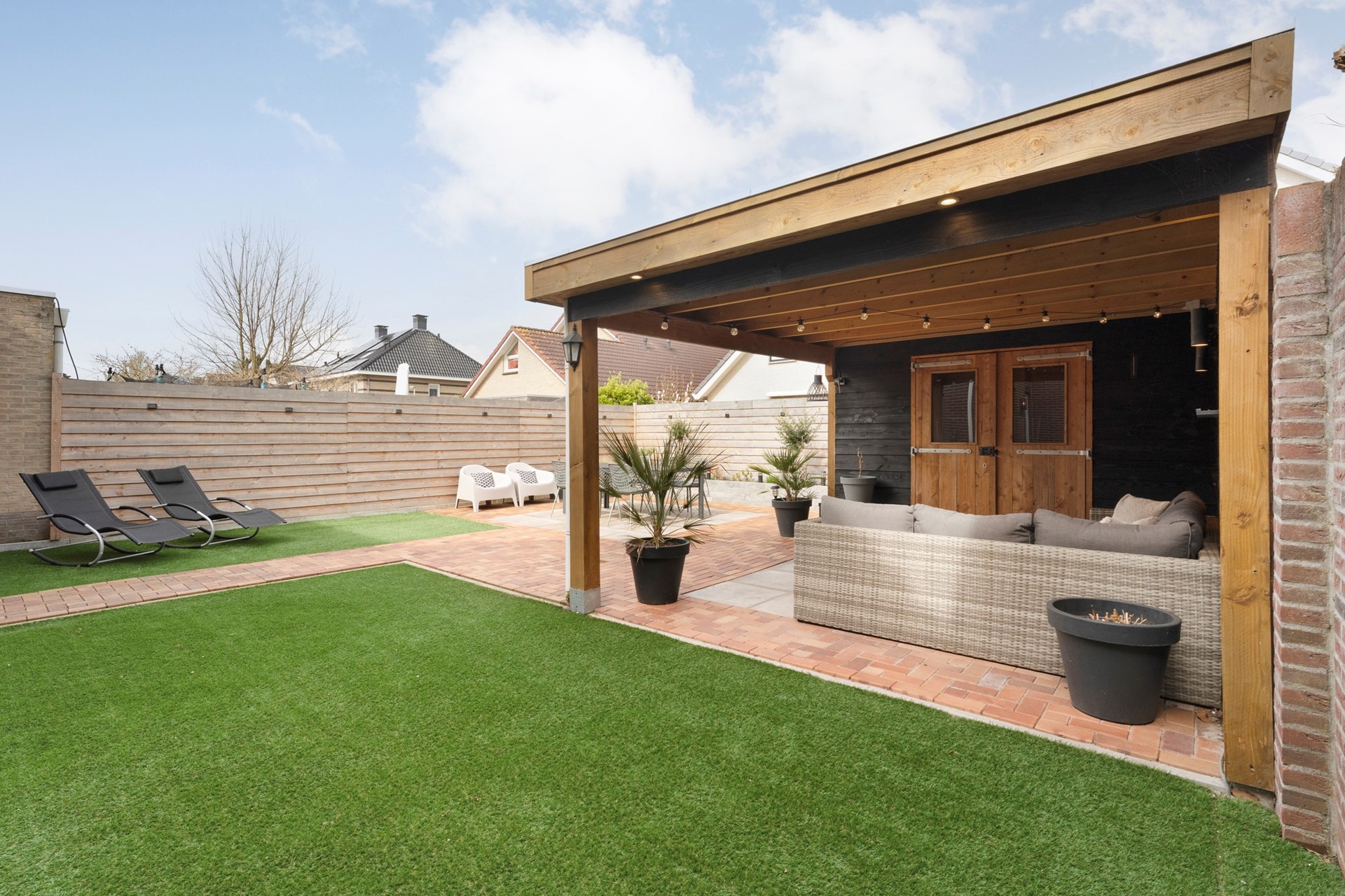 In 2025 volledig opnieuw aangelegd en voorzien van een prachtige overkapping. Hier zit je heerlijk beschut en kun je optimaal genieten van lange avonden buiten.
