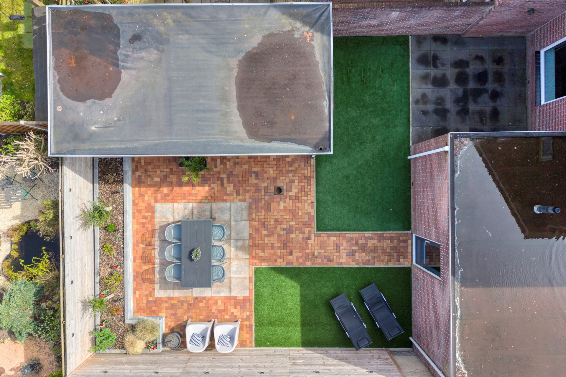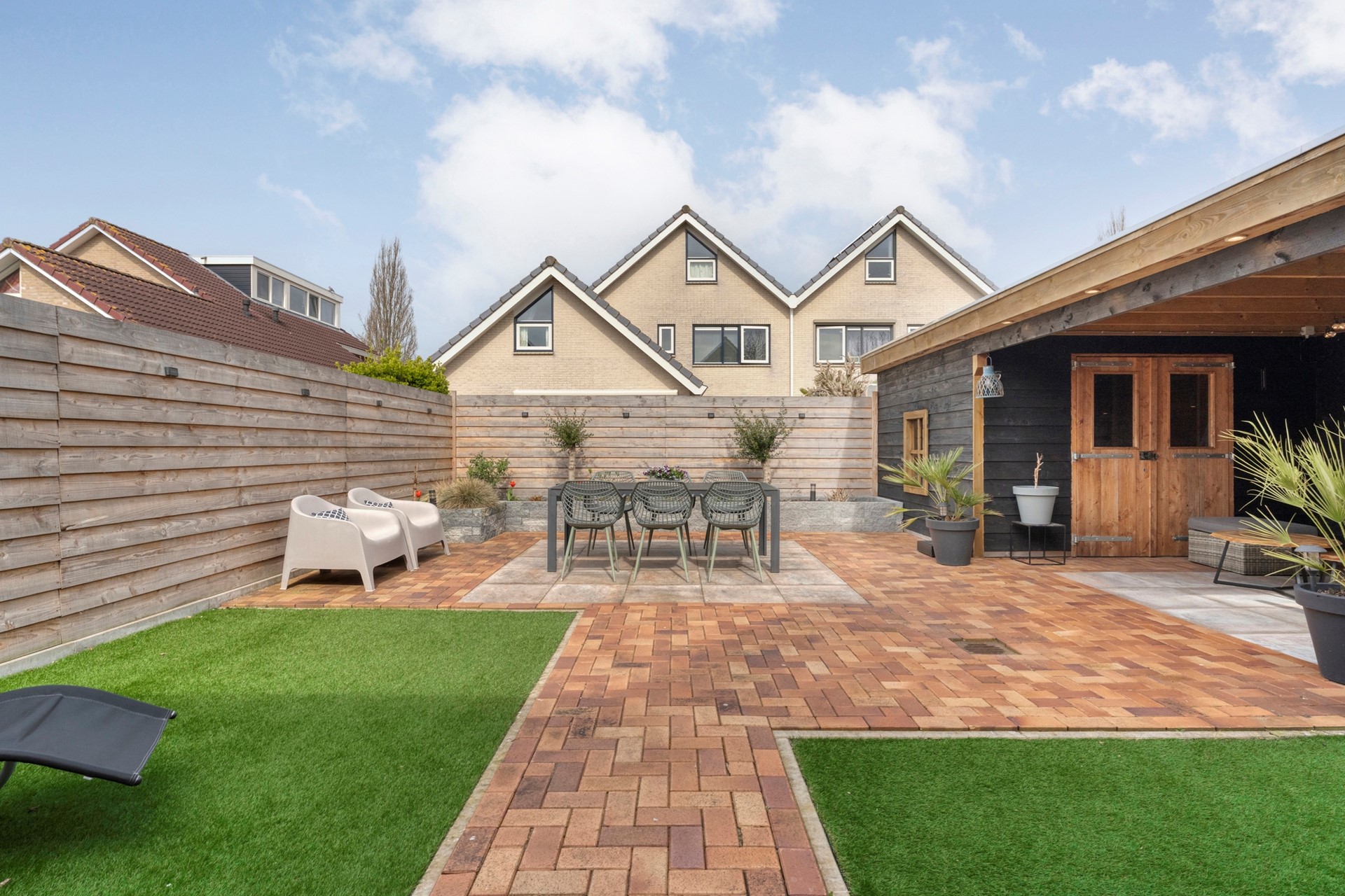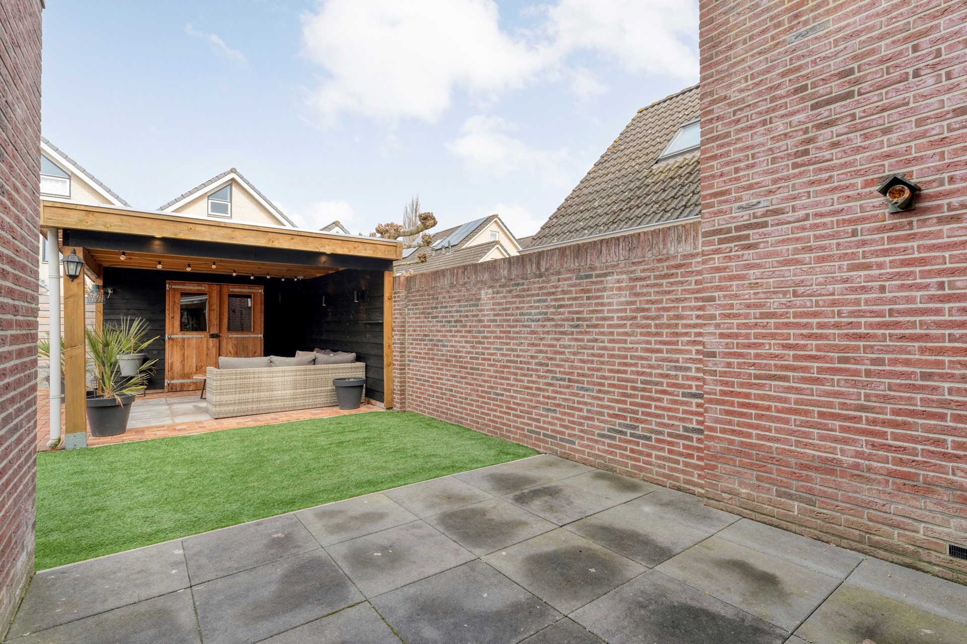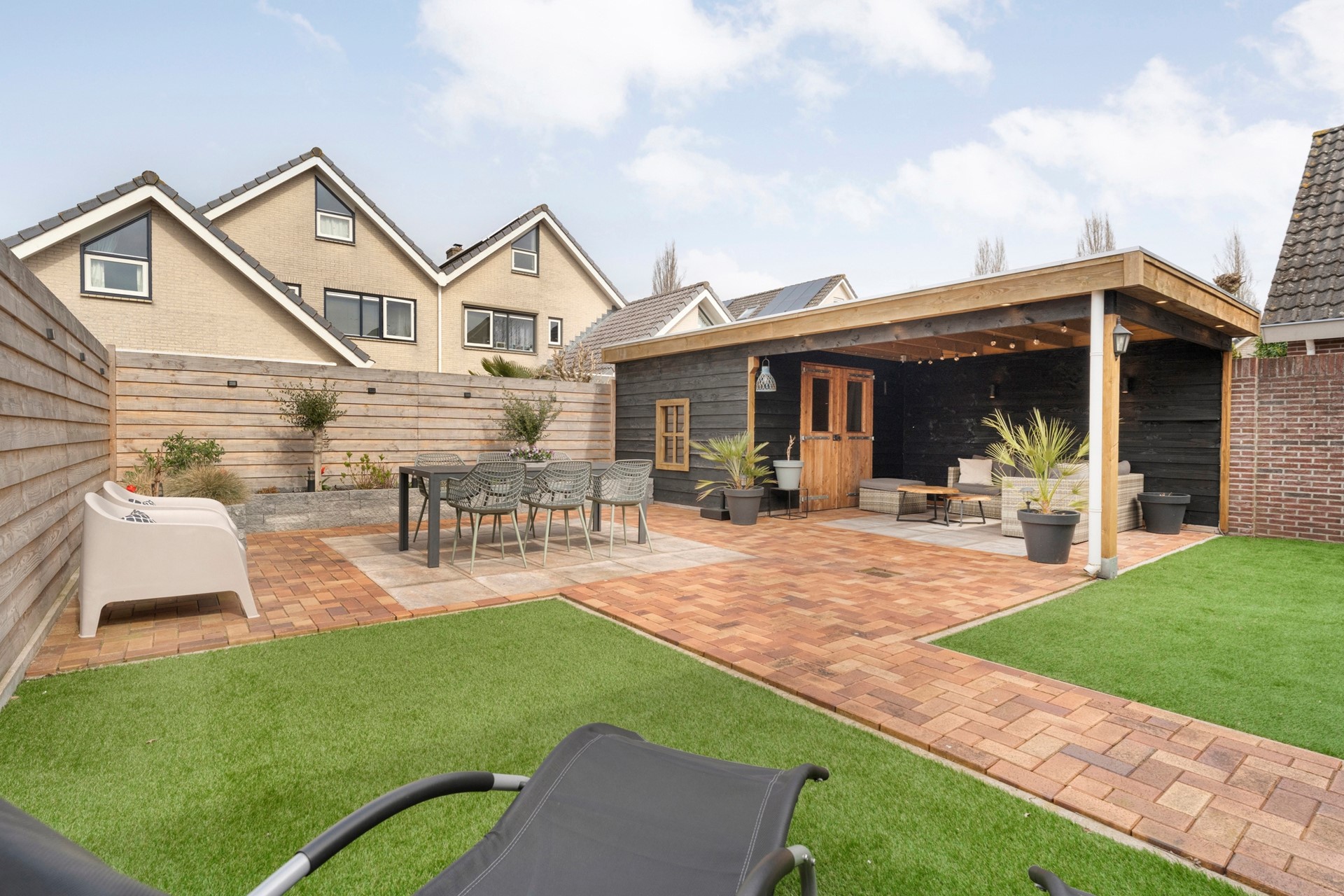 In 2025 volledig opnieuw aangelegd en voorzien van een prachtige overkapping. Hier zit je heerlijk beschut en kun je optimaal genieten van lange avonden buiten.
