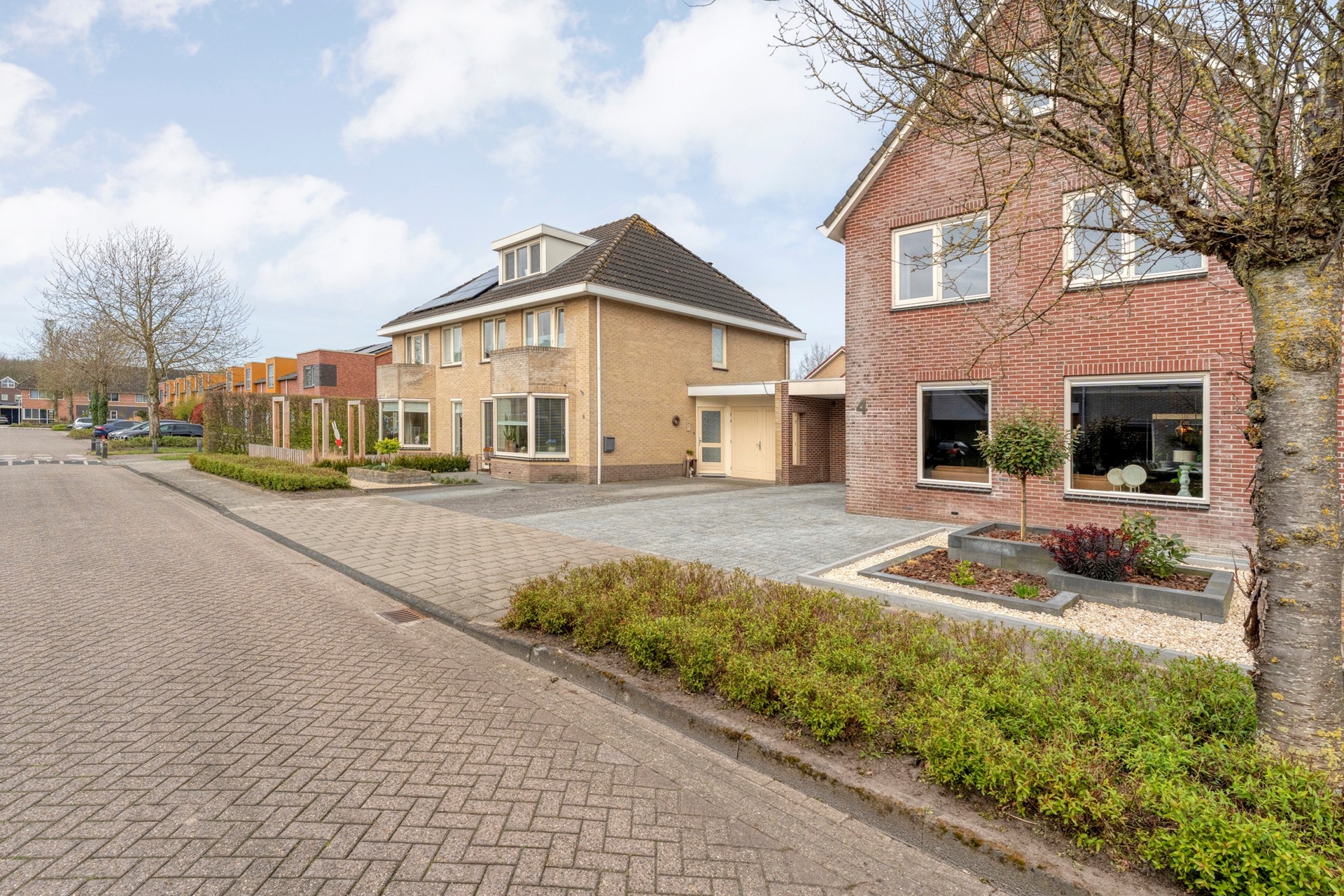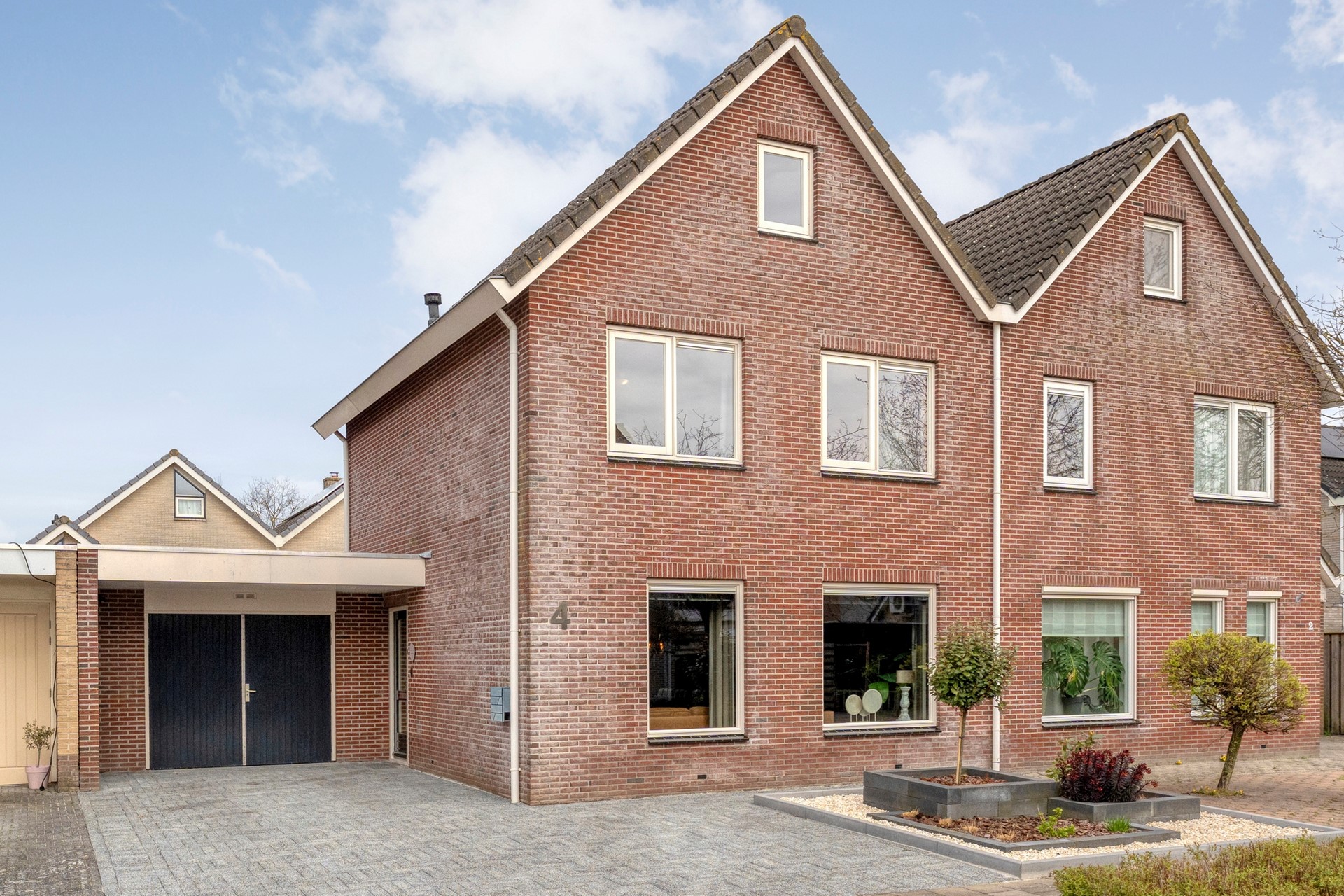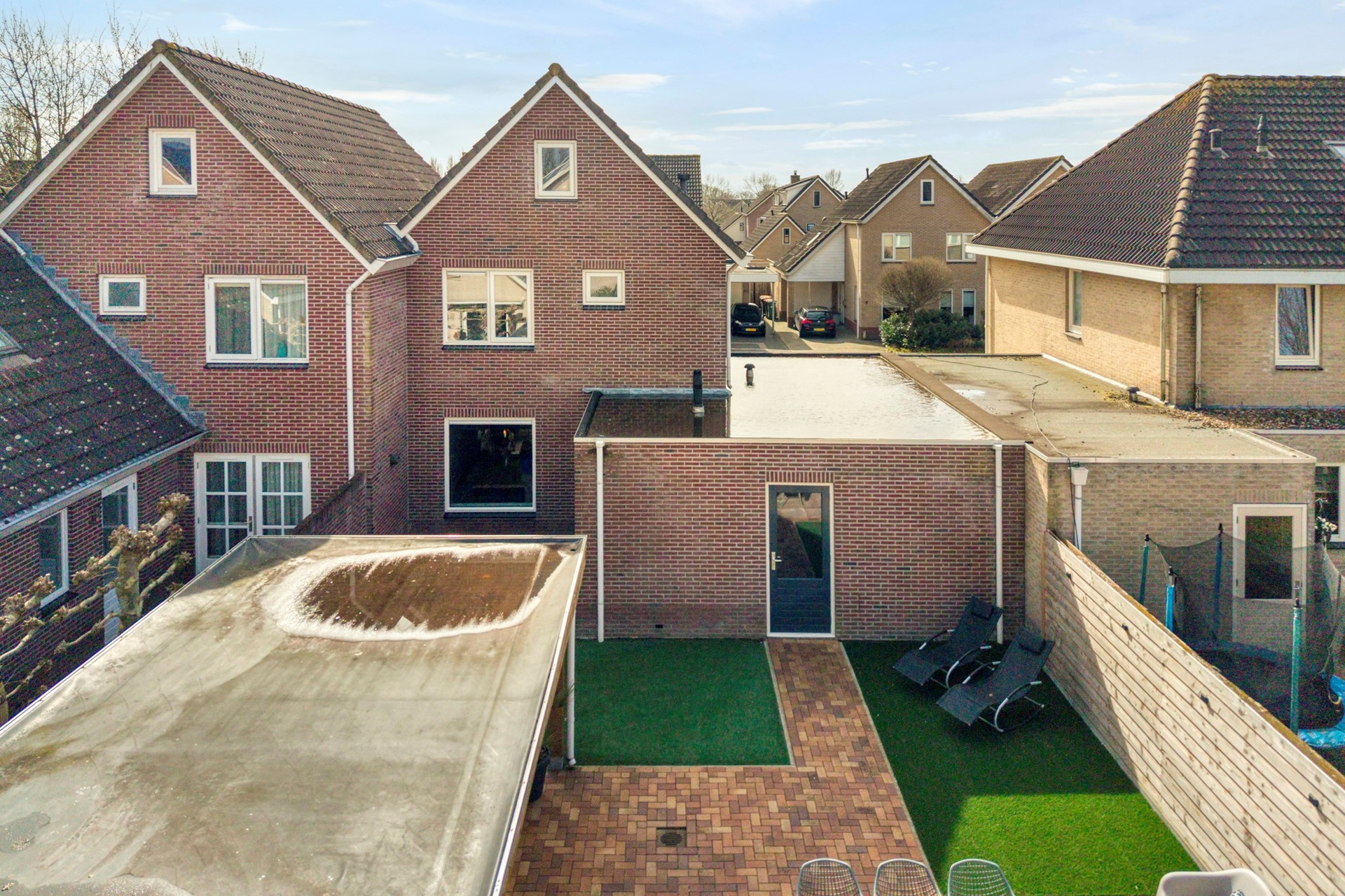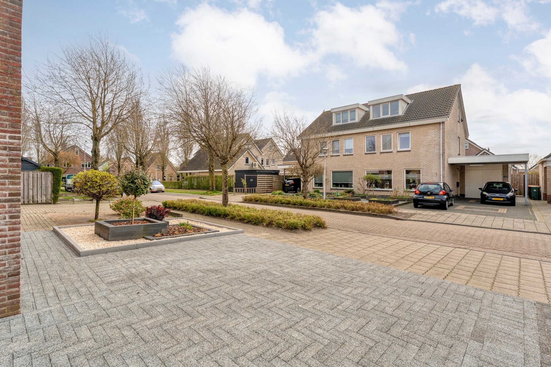 De voortuin en oprit zijn in 2025 opnieuw aangelegd, waardoor je hier comfortabel meerdere auto’s op eigen terrein kunt parkeren.