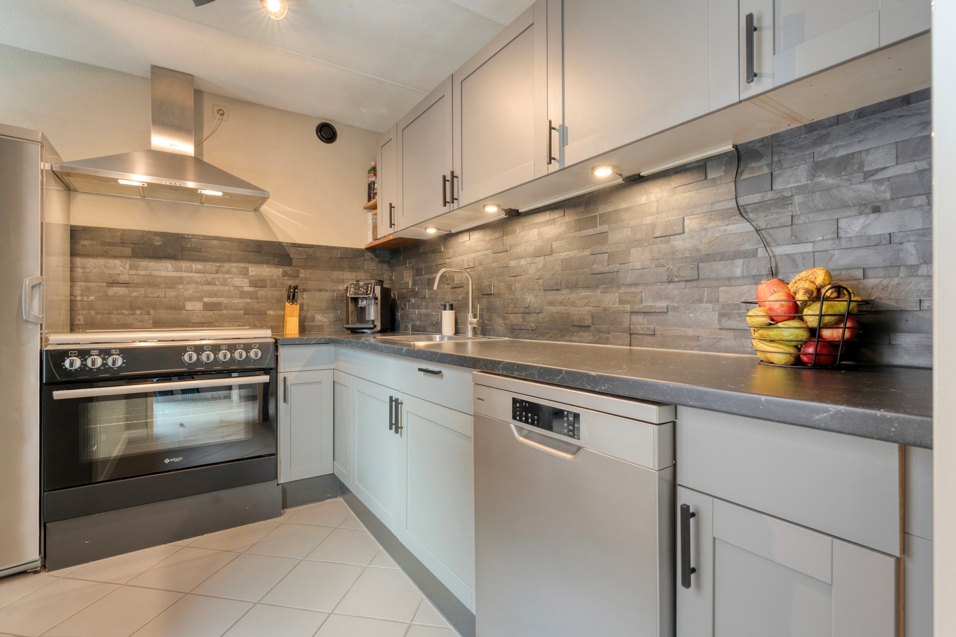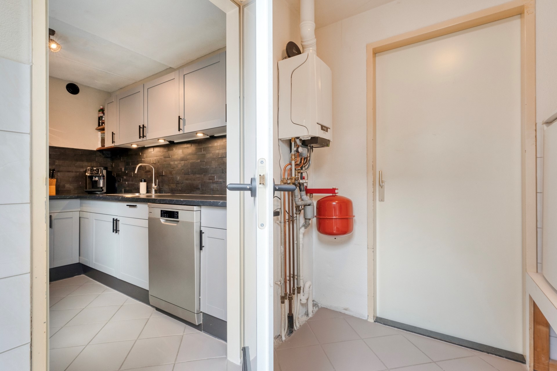 De keuken is deels gemoderniseerd. Zo zijn de koelkast en het fornuis vernieuwd in 2022 en de vaatwasser in 2021. Aangrenzend bevindt zich de bijkeuken met toegang tot de garage en de tuin.