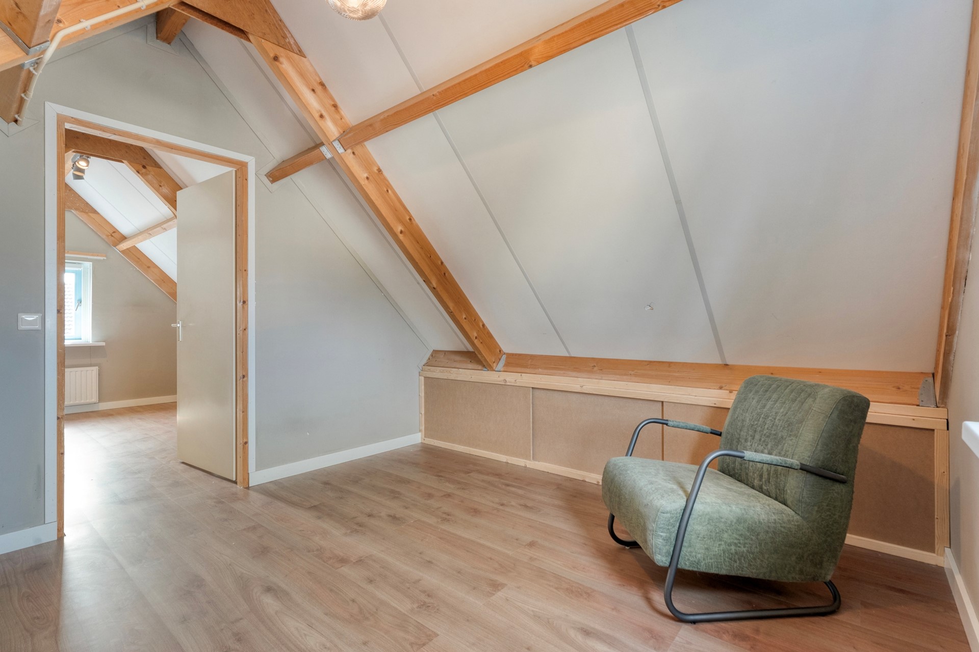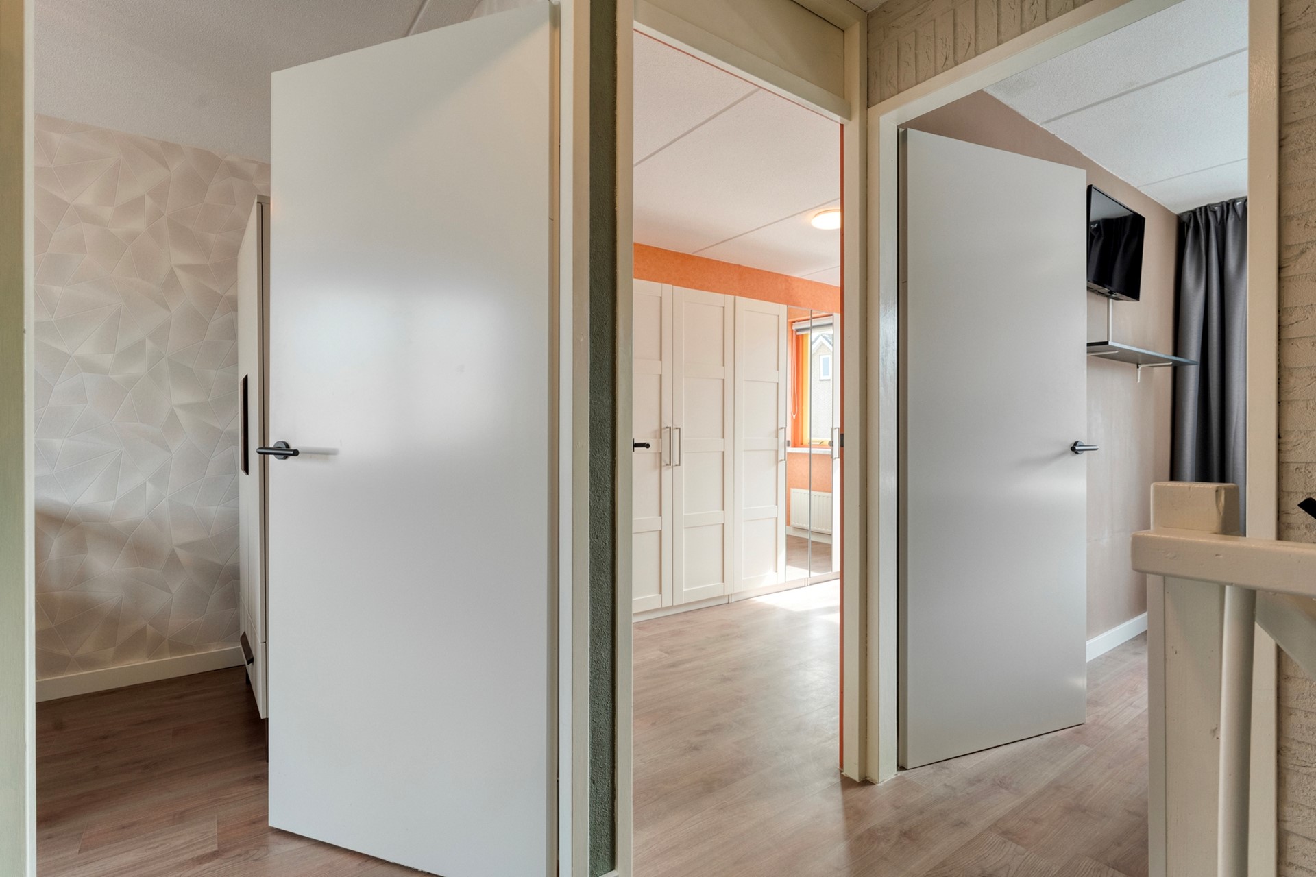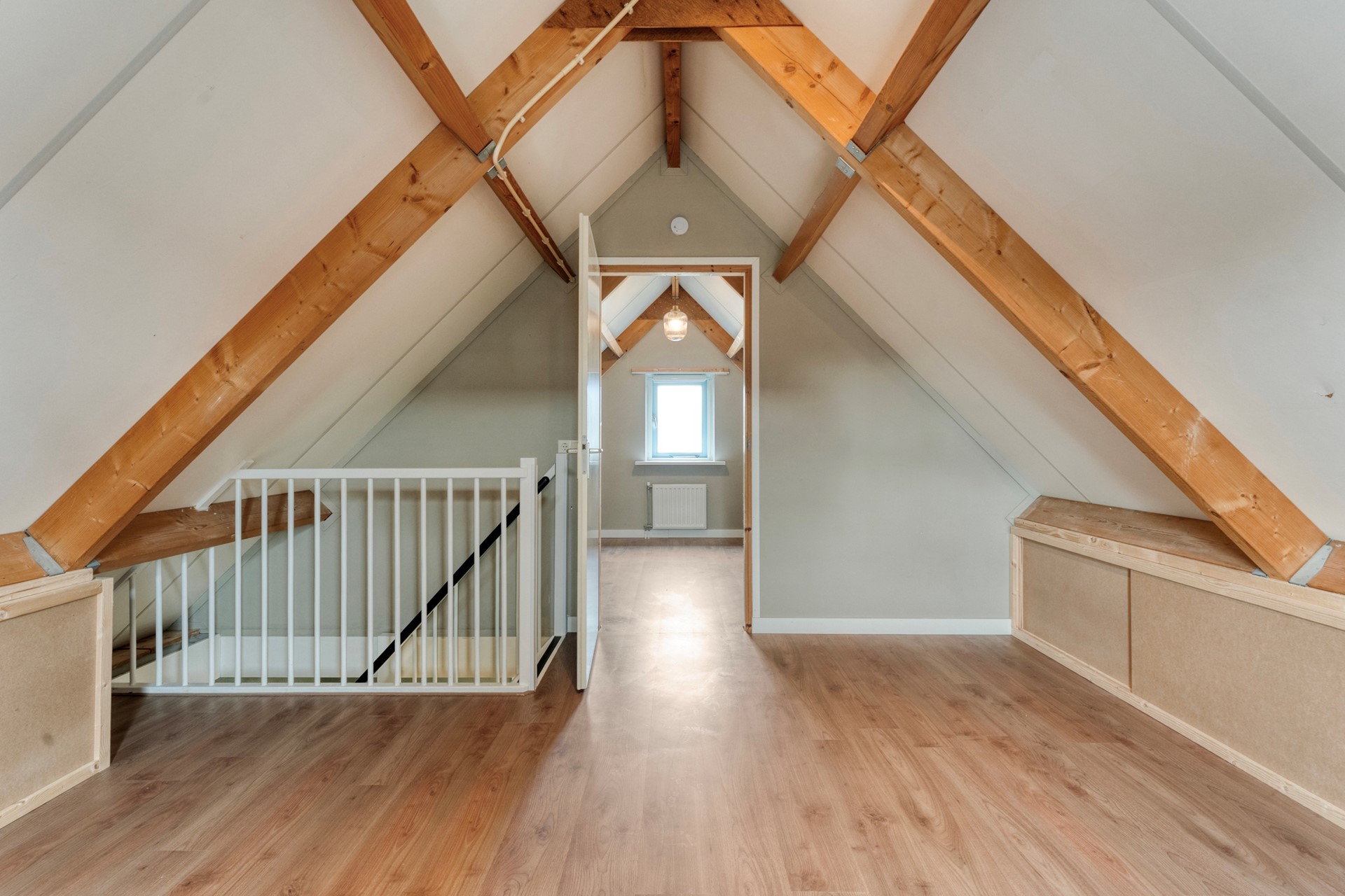 Ruime overloop met de mogelijkheid om een extra slaapkamer te realiseren. Daarnaast bevindt zich hier nog een vierde slaapkamer. Dankzij de ramen aan beide zijden komt er veel daglicht binnen.