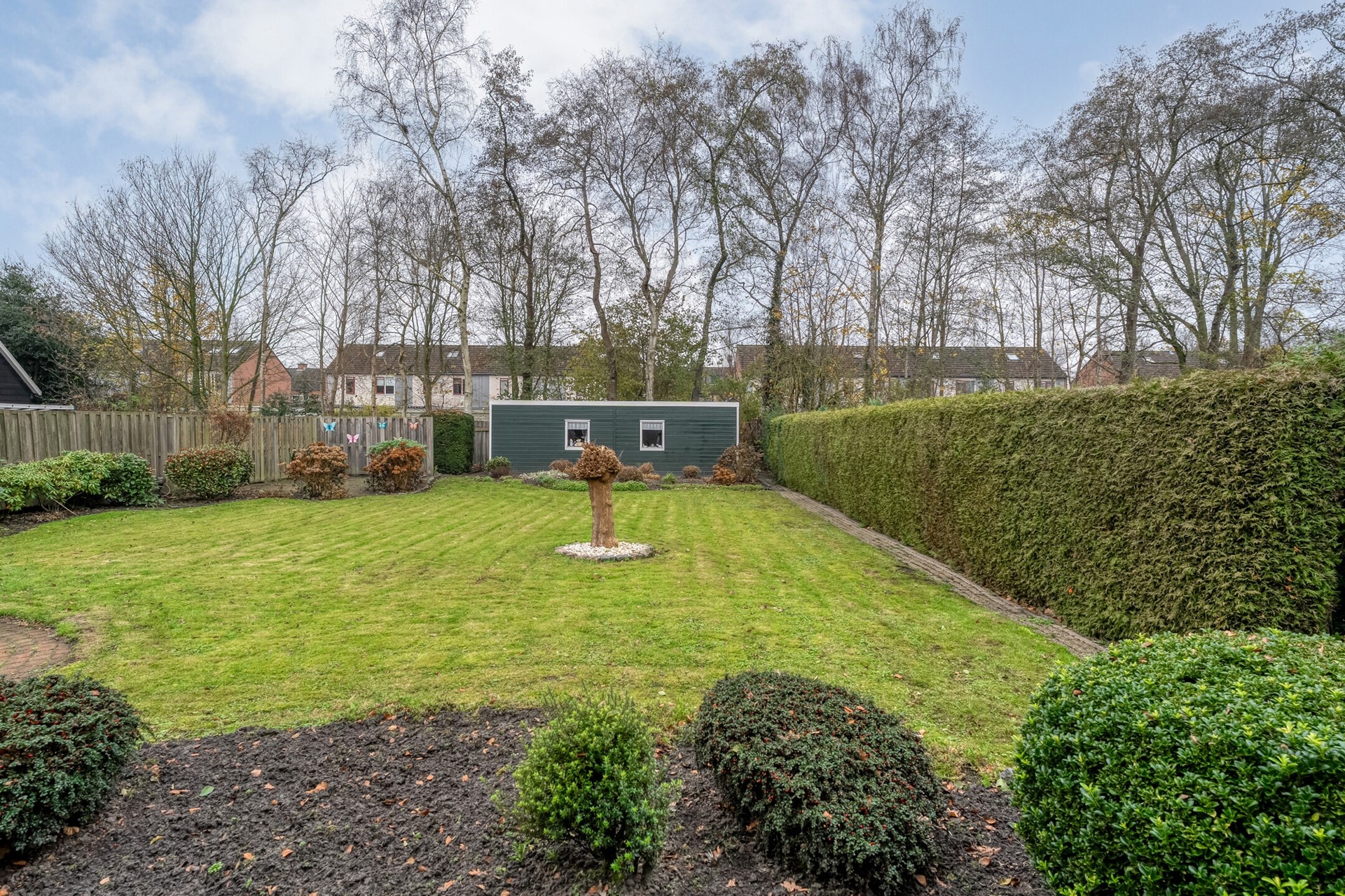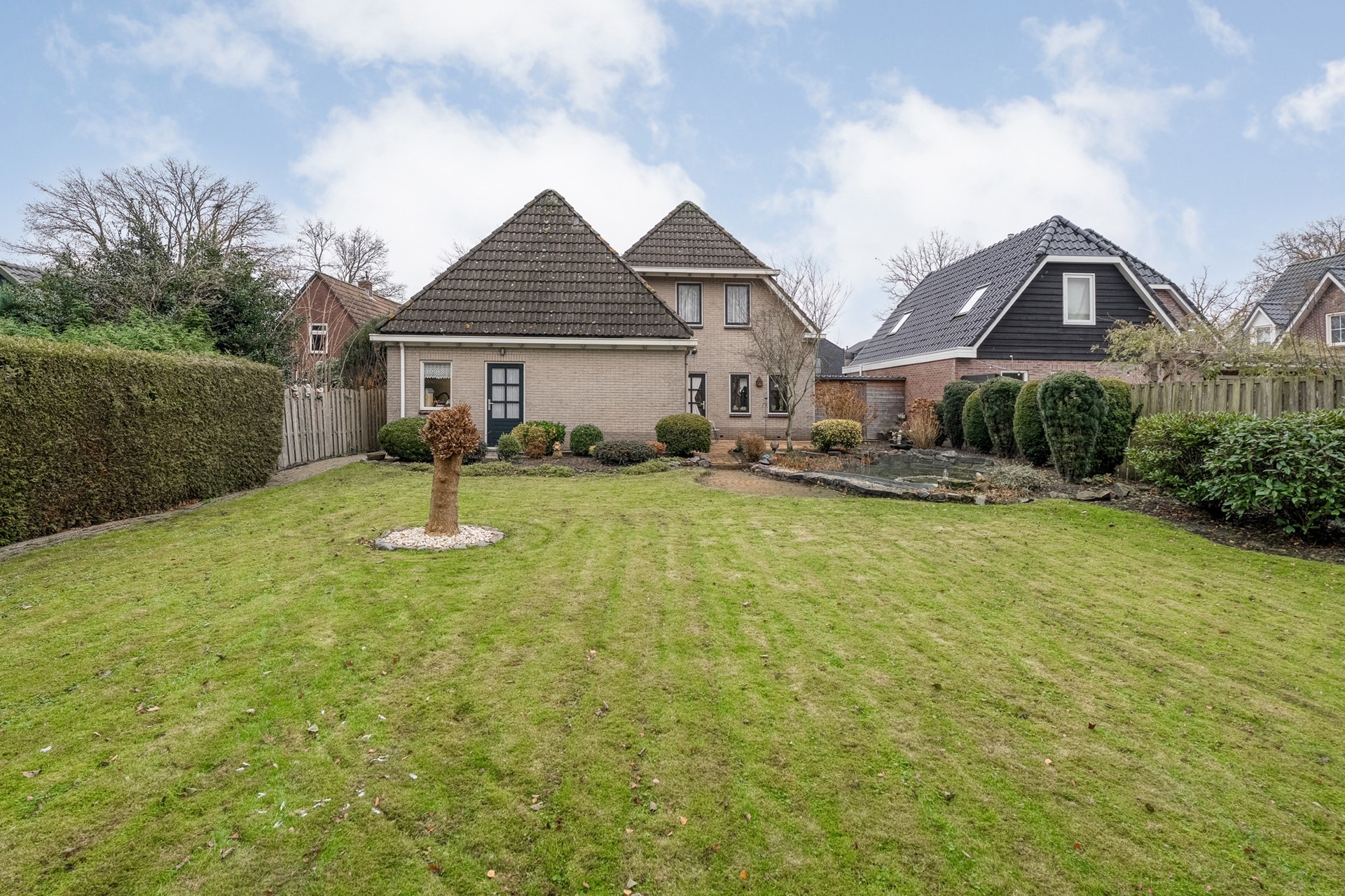 Buiten ligt een kavel van maar liefst 900 m² op je te wachten. De tuin is groot, groen en heerlijk vrij gelegen, waardoor je hier echt kunt genieten van je eigen plek. Of je nu wilt ontspannen in de zon, ruimte zoekt om te tuinieren of graag buiten leeft, het kan hier allemaal. En dat terwijl je juist zo centraal woont in het dorp. Winkels, scholen en andere voorzieningen zijn dichtbij, maar thuis ervaar je vooral rust en volop privacy.