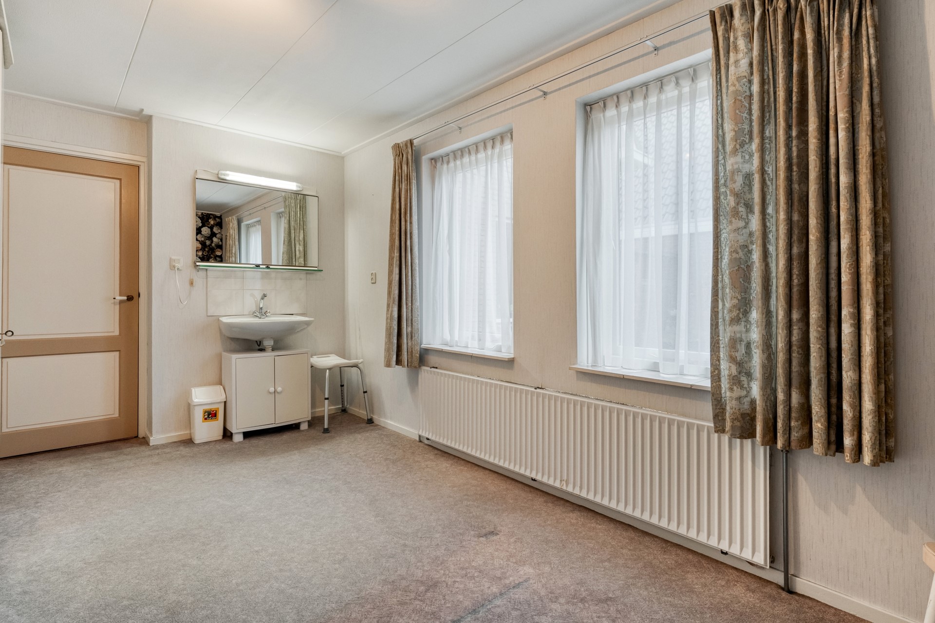 Op de begane grond is daarnaast een extra slaapkamer aanwezig. Deze ruimte leent zich uitstekend als gelijkvloerse slaap-/werkkamer, maar is ook ideaal voor bijvoorbeeld een praktijkruimte aan huis.