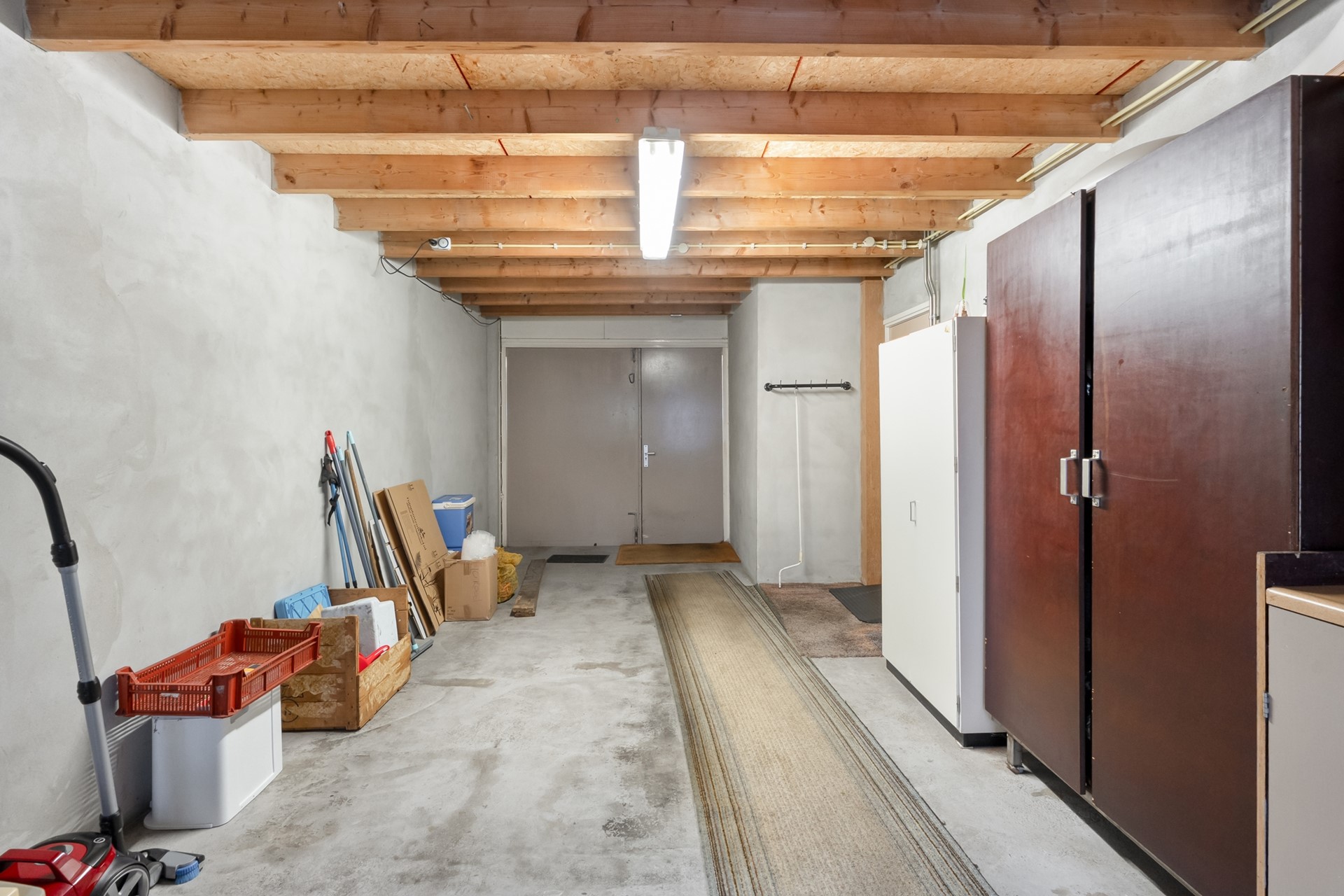 Aangrenzend bevindt zich de zeer ruime garage, in spouw gebouwd en daardoor goed geïsoleerd en geschikt voor diverse doeleinden zoals hobby, werkplaats of extra bergruimte. In de garage zijn de was- en droogopstelling geplaatst en er is toegang tot de kruipruimte.