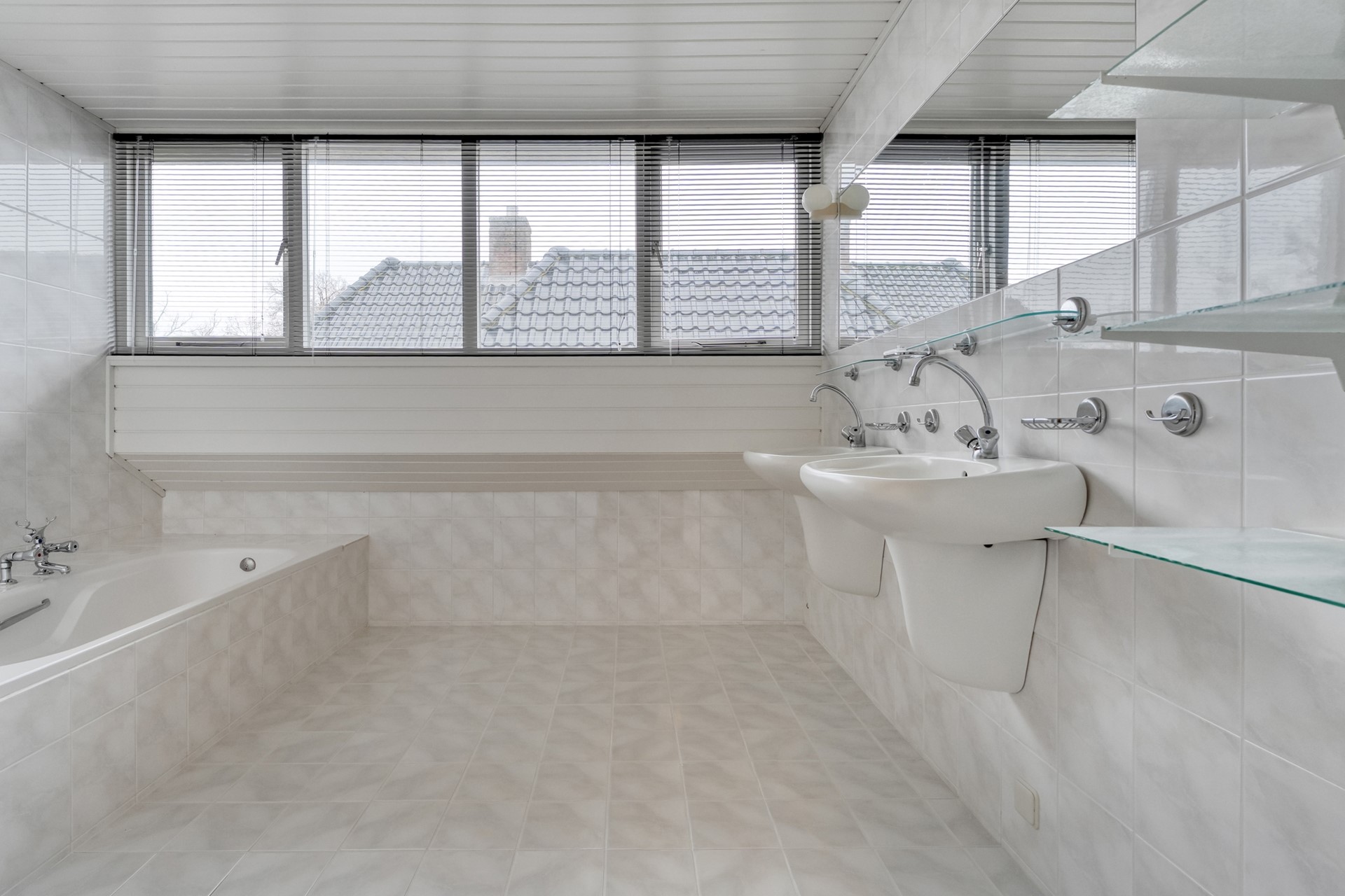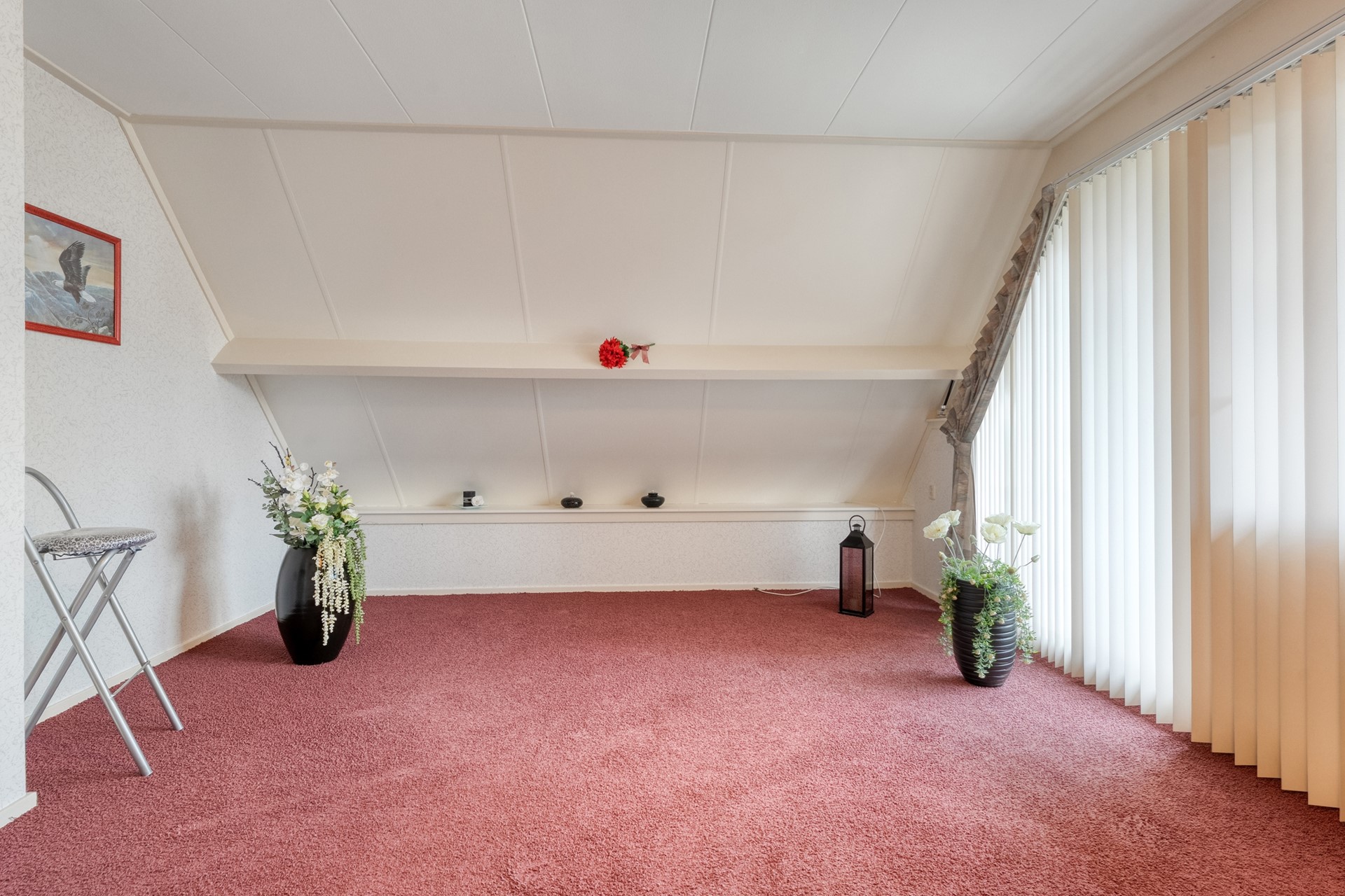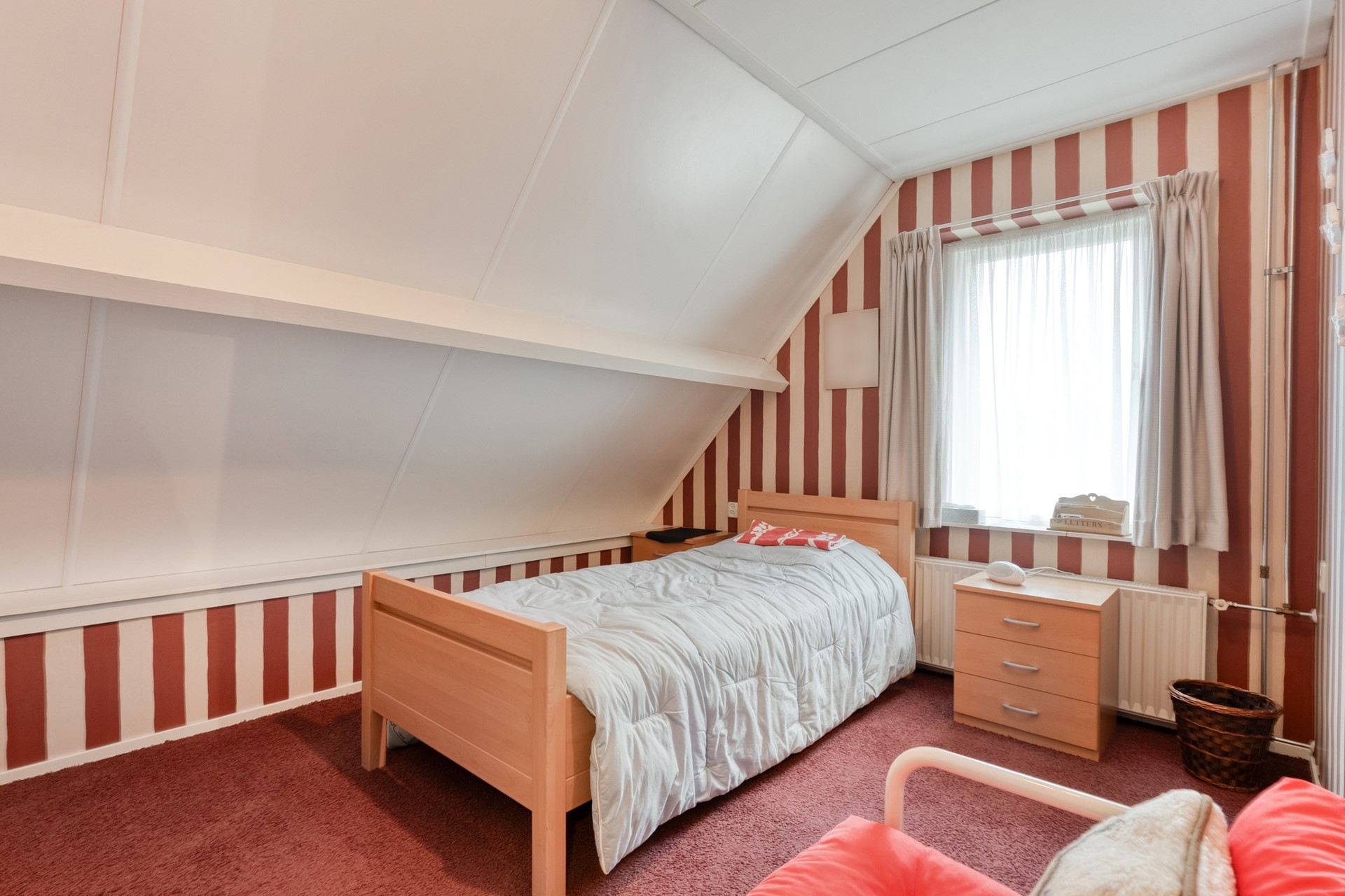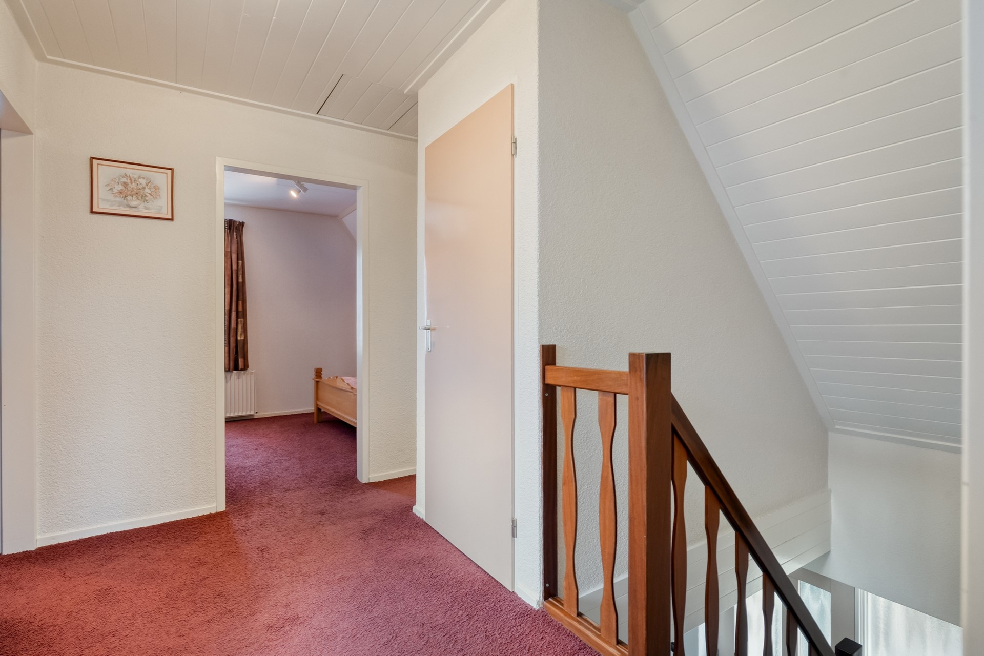 Op de verdieping vind je drie slaapkamers. De grootste slaapkamer ligt aan de voorzijde en beschikt over een keukenblok en toegang tot het balkon. De overloop is voorzien van tapijt en geeft toegang tot de overige kamers. De badkamer is verrassend ruim en licht, met een ligbad, inloopdouche en wastafel. Boven de garage ligt nog een extra royale (berg)ruimte met houten vloer, waar ook de cv-installatie is geplaatst. Een perfecte plek als hobbyruimte, werkkamer of extra opslag.