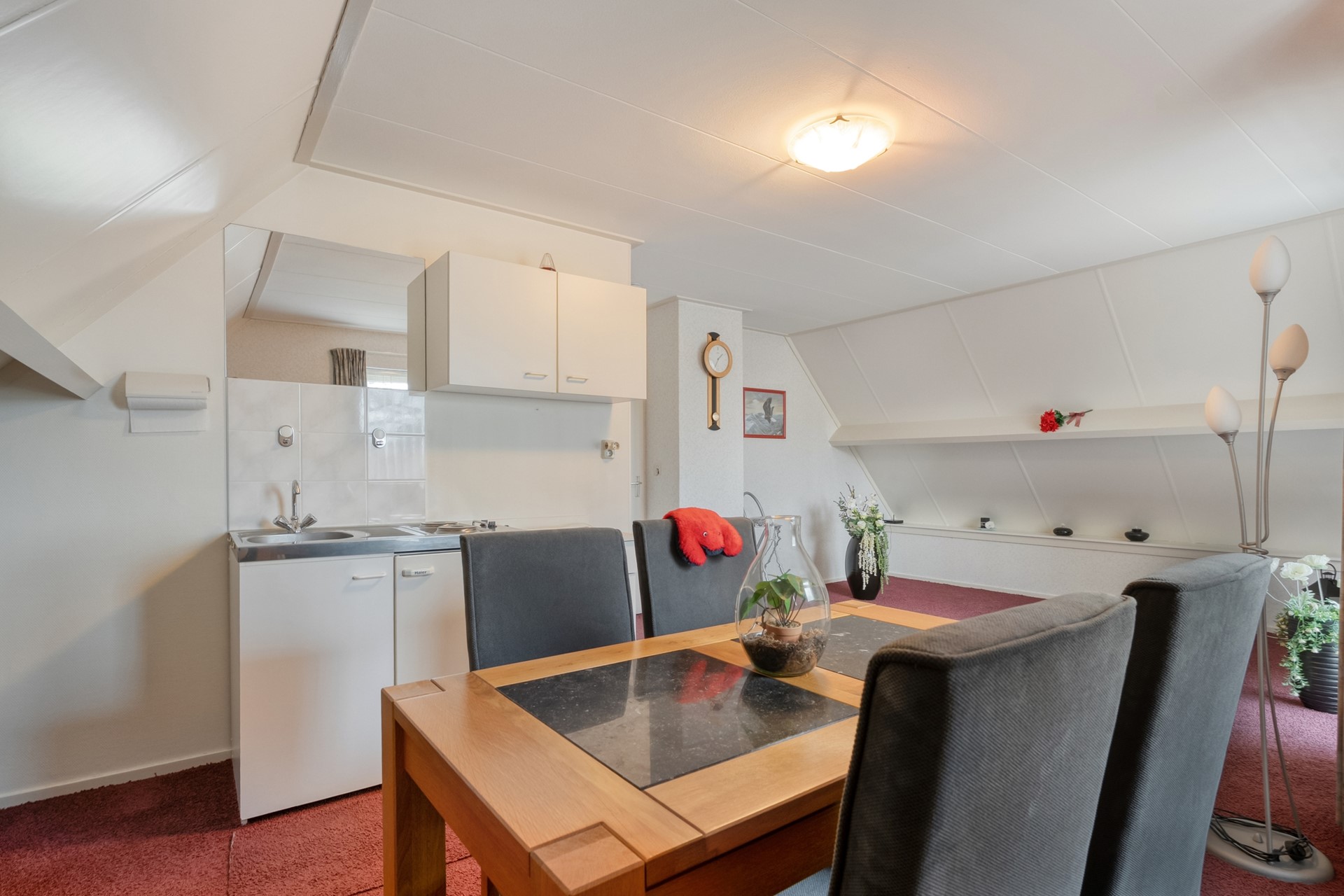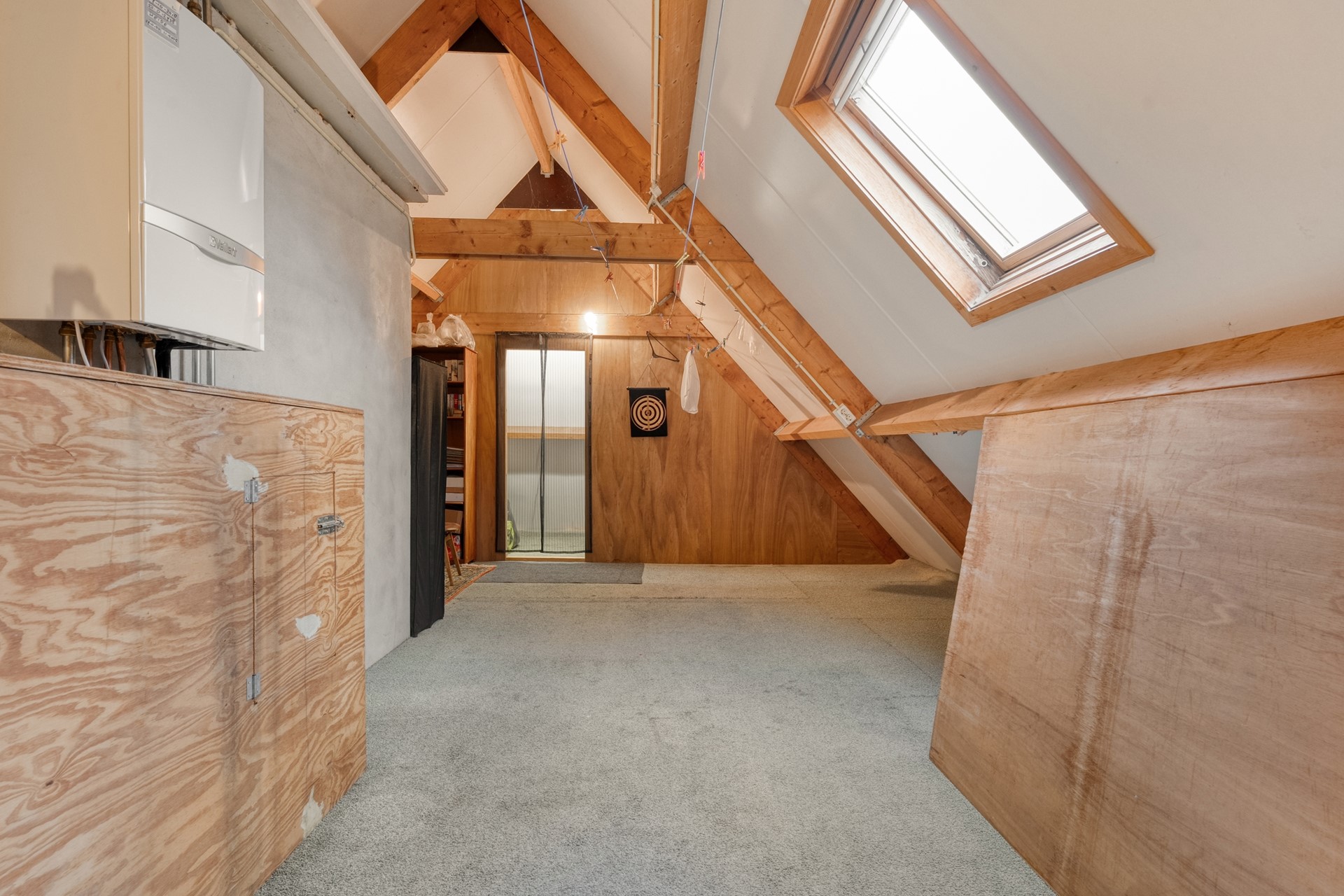 Via een luik op de eerste verdieping bereik je de bergzolder. Een praktische extra ruimte voor het opbergen van spullen die je niet dagelijks nodig hebt.