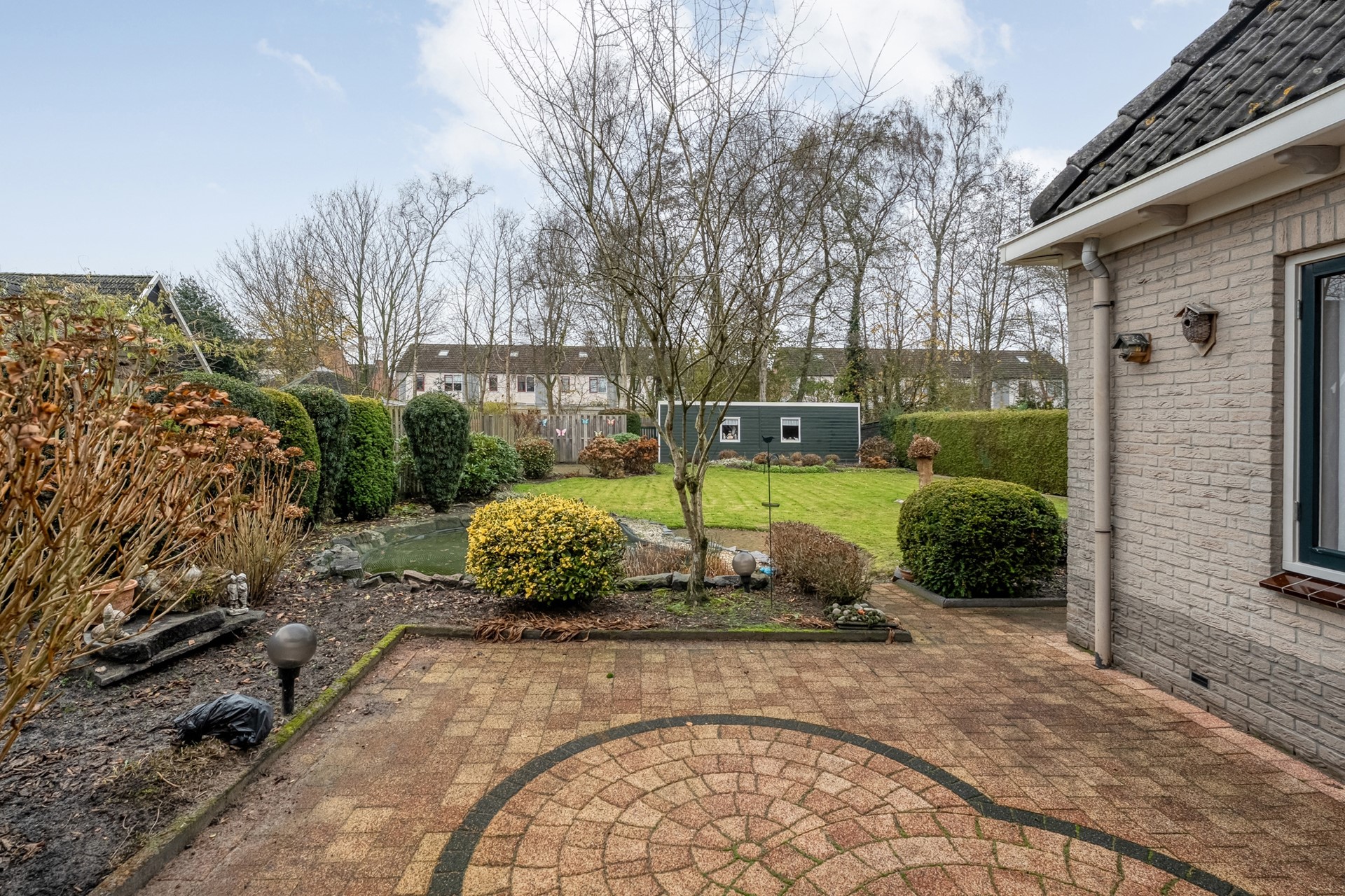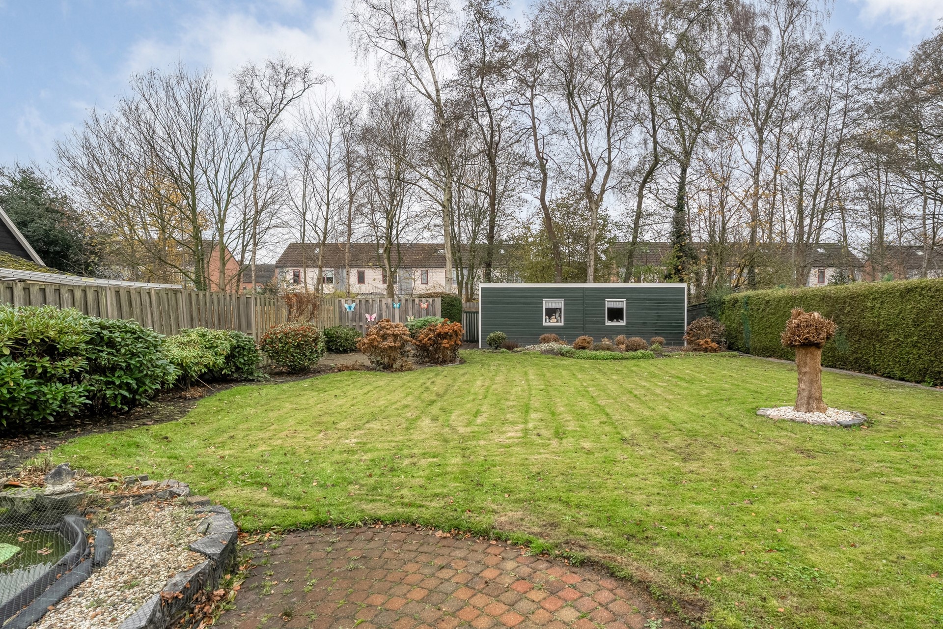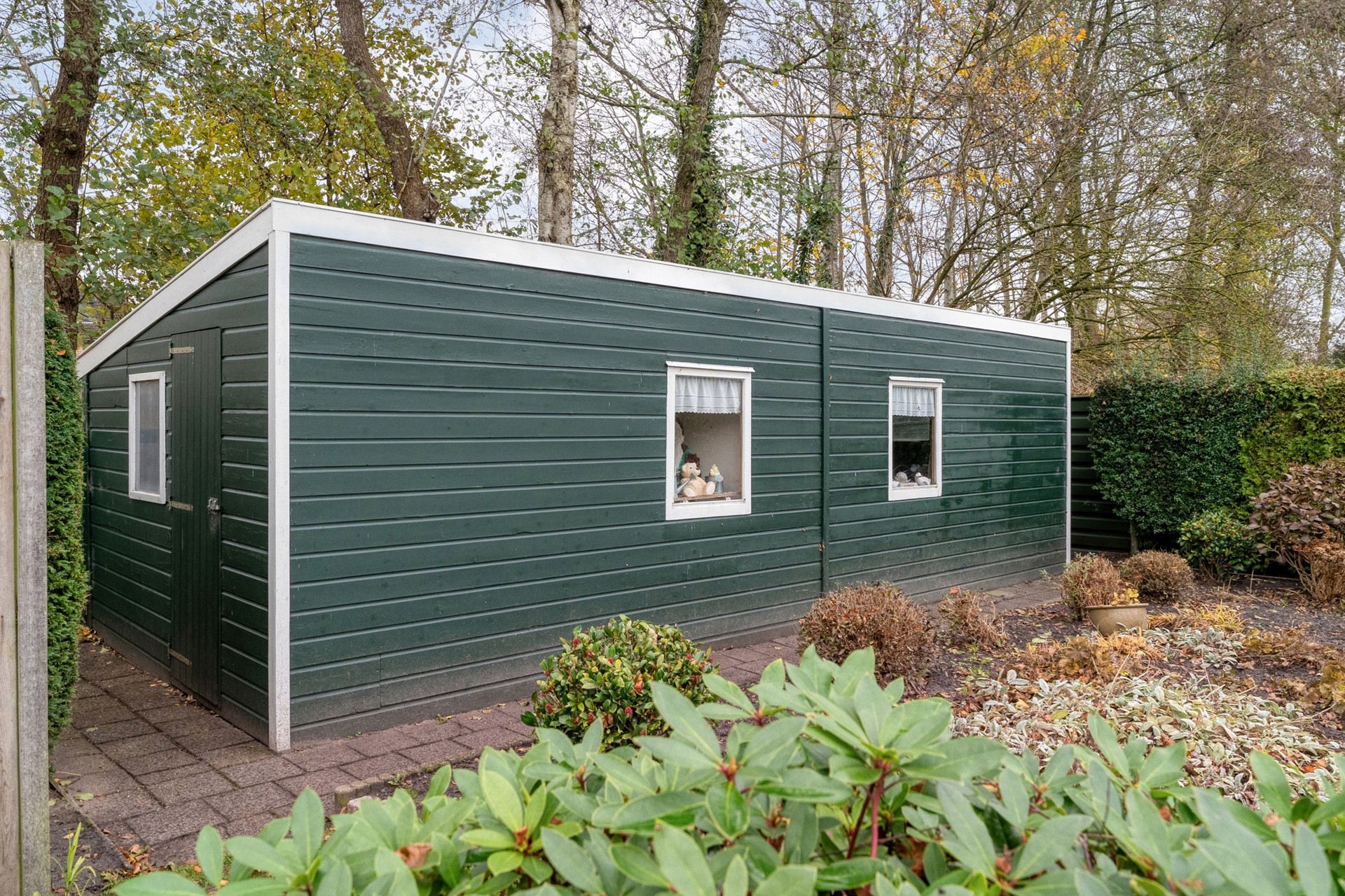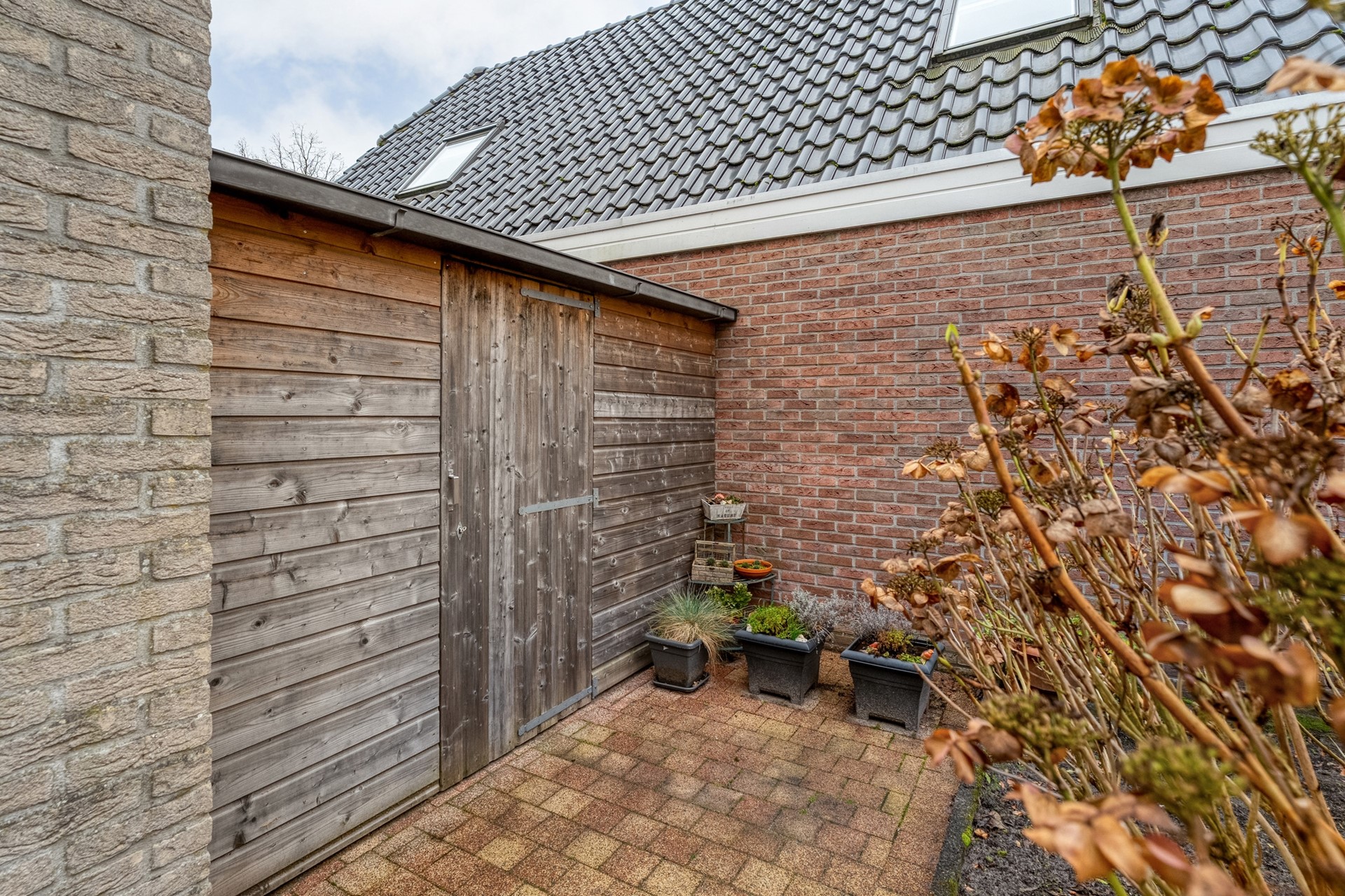 Rondom de woning ligt een royale achtertuin op het zuidoosten, met meerdere terrassen en fijne zitplekken. Daardoor kun je op elk moment van de dag kiezen voor zon of juist wat schaduw. Achter in de tuin staat een vrijstaande berging/schuur, opgebouwd uit twee delen, ideaal voor extra opslag of hobbyruimte. Dankzij de vrije ligging en het vele groen geniet je hier van volop privacy en een heerlijke plek om echt tot rust te komen.
