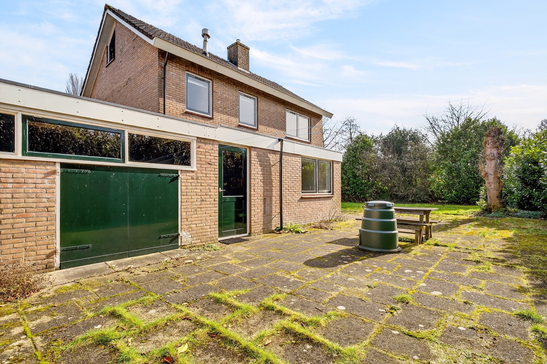 De grote vrijstaande garage is in 1979 aangebouwd en biedt volop ruimte voor het stallen van een auto of voor andere doeleinden zoals hobby of opslag.