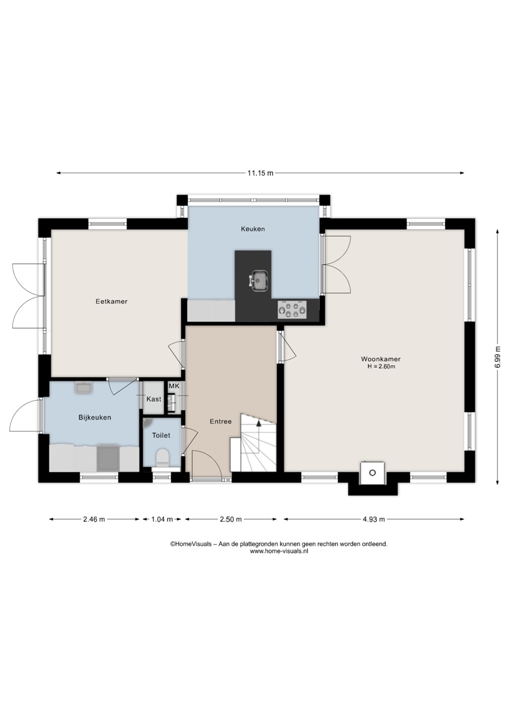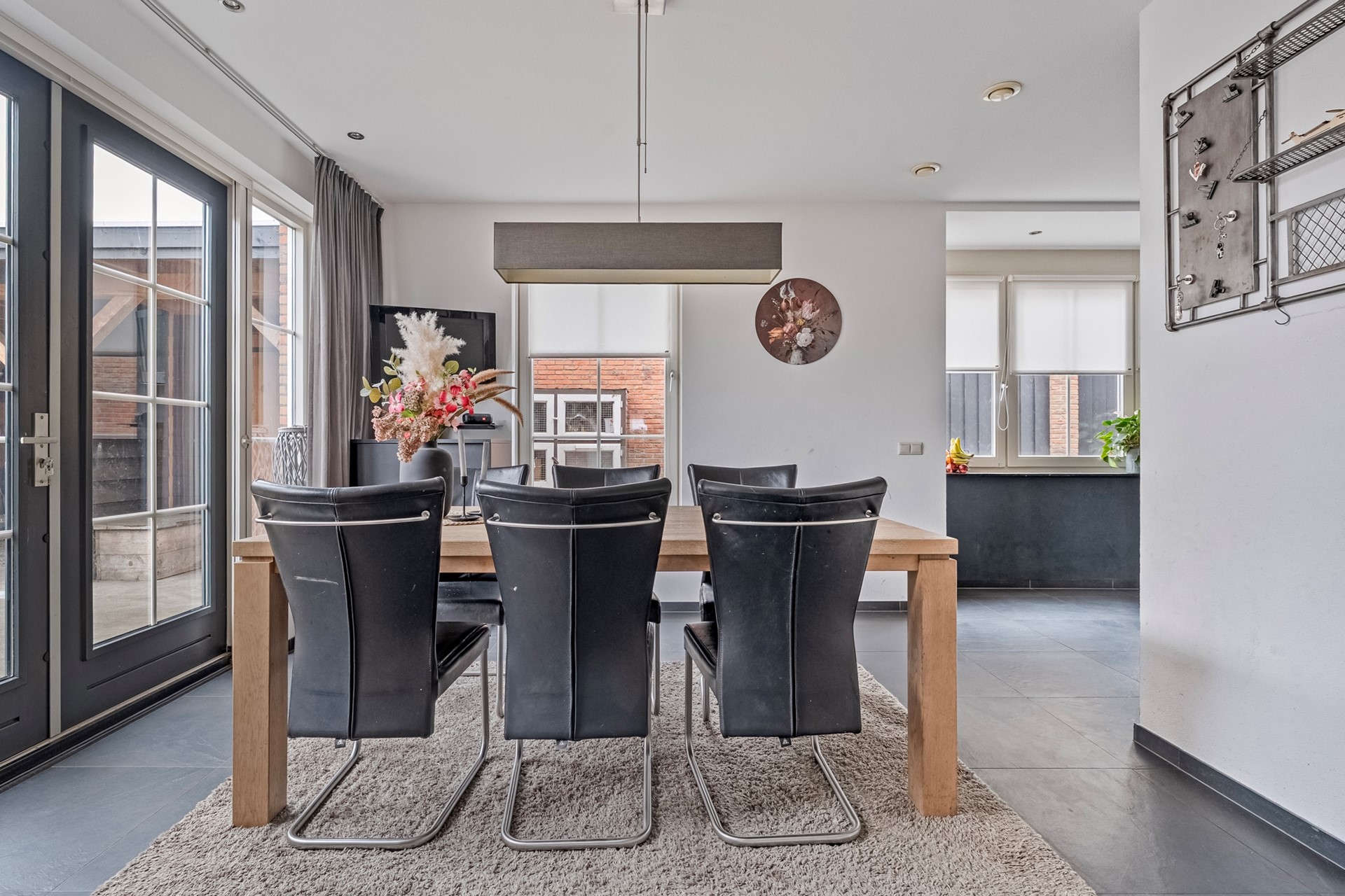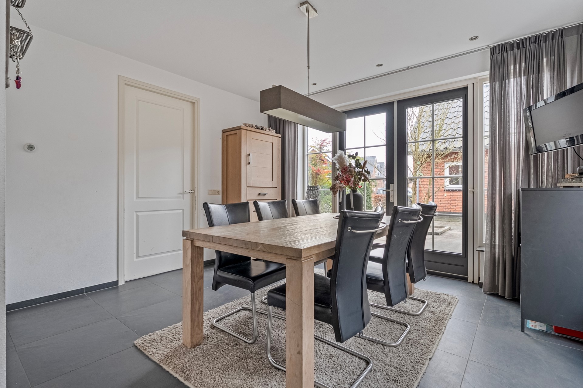 Via openslaande deuren is er een directe verbinding met de keuken en eetkamer. Deze ruimte kan desgewenst ook afgesloten worden.