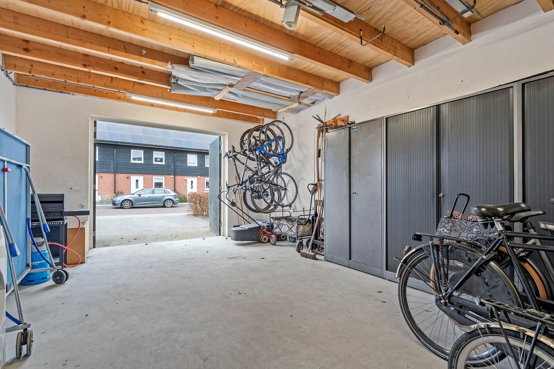 Een droom voor de hobbyist, de klusser of misschien wel de ondernemer aan huis. Alle ruimte om te sleutelen, creëren of werken. Staat jouw oldtimer hier straks te glimmen? Of wordt dit jouw eigen werk- of sportruimte? De mogelijkheden zijn er in ieder geval volop! En psst… er ligt zelfs al vloerverwarming in de garage. Deze moet alleen nog worden aangesloten.