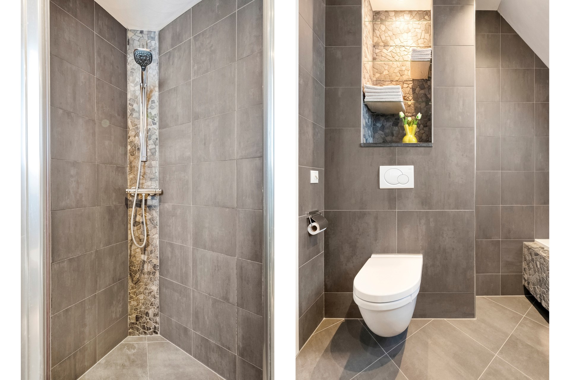 De eerste verdieping beschikt over drie ruime en lichte slaapkamers, die dankzij de grote ramen een prettige en open sfeer bieden. De kamers zijn keurig afgewerkt en voorzien van praktische opbergruimte, waaronder vaste kasten met schuifdeuren. De moderne badkamer is compleet uitgevoerd en beschikt over een inloopdouche, een hoekbad, een wastafelmeubel en een tweede toilet, wat zorgt voor optimaal comfort voor het hele gezin.
